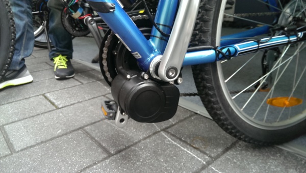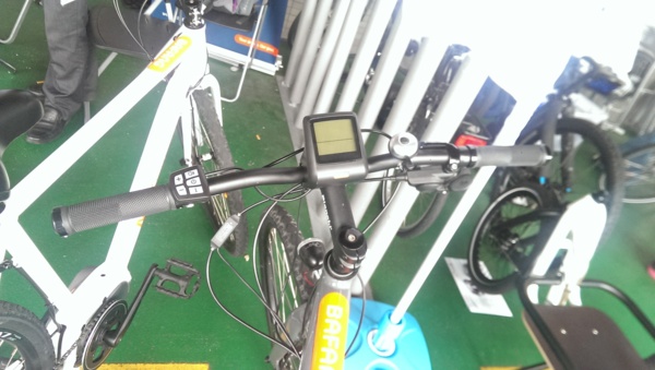 小編有點怠惰, 但也實則為準備今年的台北自行車展與家中有事, 才久久沒有更新. 小編公司的攤位向來都位於戶外的試乘區, 放眼望去台灣廠商, 今年沒有讓人驚豔的ebike整車或電控系統, 是以跟去年比較的前提下的感覺. 當然小編並不是說沒有好產品, 而是沒有看到就讓人眼睛一亮的"新"產品. 看倌們不要誤會我的意思阿~~ 反倒是在其他攤位, 甚至是中國參展廠商有一些新產品的推出. 下面針對幾項產品來簡單的介紹 八方 動態試乘的攤位處於4樓ExtraEnergy包下的斜坡上. 他們推出了第二代的中置馬達, 整體尺寸相較於第一代屬於比較大, 車架亦需配套修改. 首先在HMI的ID造形確實比前一代進步, 左手按鈕的部分質感還不錯, 但又大又圓的電池沒有對上小編個人的喜好. 會場中有兩台試乘車, 反覆在會場的坡道上下來回, 發覺其中一台的振動噪音明顯大過另一輛. 其業務表示應用兩種不同的科技才會有如此的不同, 小編實難參透此中道理. 整體的試乘感覺, 輸出扭力是充沛的, 游刃有餘的應付展場斜坡, 可輕易維持13~15km/h的上坡速度, 噪音則介於Bosch(大)與Shimano(小)之間. 但馬達輸出的感覺仍然不夠線性與流暢. 但明顯感覺到接近大廠的水準