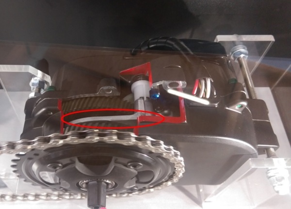 小編在歐展完並沒有馬上回台, 仍在歐洲多停留一些時間. 回到工作崗位後終於可以克服時差與擠一點時間來為大家送上今年度Ebike產業界有哪些新鮮事, 因為不同領域投入者眾, 大概會分成幾個不同的主題來撰寫. 首先第一部分仍是最大的中置系統領域. 整體來說, 若以去年已經出現在展覽上的公司為前提下, 今年的展品至少90%跟台北展及去年歐展相同. 大多數針對使用者介面與APP進行強化. 但只能說追兵不少, 而且不乏世界知名大廠的投入. 稍後將一一解析 Bosch 今年度將其產品線分為三大部分, 分別為Performance line/Performance speed line/Active line. 由名稱可以知道今年提供45km/h的S pedelec版本. 這幾個line主要差異為提供不同騎乘助力的輸出以滿足不同的客戶需求, 雖沒辦法客製化但也盡量提供消費者多種選擇. 另外他們宣稱為提供更好的騎乘感覺, 在扭力偵測上增加感測頻率, 關於這點小編認為純粹宣傳手法, 因為各家控制器的扭力偵測應該都具備此能力. 去年小編曾有大篇幅介紹的Nyon儀表與電子變速的整合, 仍為今年主軸之一, 在此便不再贅述, 有興趣的看倌請自行參照去年歐展的介紹. Panasonic + 2sp sifting 雖然耳聞有新一代產品的產出, 但有一說是被美國大客戶獨賣權, 因此小編無法證實是否有此機種, 但展位中倒是放上2段變速的原型, 運作原理為下圖中的紅色圈起部分會移動以便嚙合不同齒比的行星齒輪組.