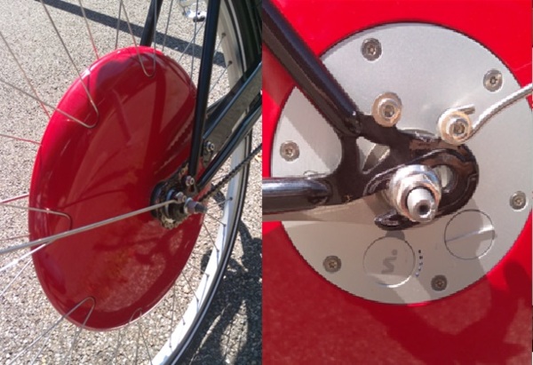 Zehus 另一個All-In-One系統 來自義大利的公司, 其實這個公司跟上述的產品概念嚴格說是源自於同一個團隊(細節便不多說). 在產品化的過程, Zehus最終使用了齒輪馬達的做法, 跟Copenhagen Wheel的馬達尺寸相比, 直徑大約僅一半左右而已, 在視覺上其實沒有這麼搶眼, 但那鍍銀的外觀也不得不說也滿顯而易見的. 整體出力Zehus實在跟Copenhagen有段大差異. 騎乘感覺其實也屬平平而已. 但Zehus有幾個產品想法是跟Copenhagen不同, 第一此馬達能夠向下相容比較小的輪徑, 可以跨界應用. 第二, 連APP都沒有. 那看倌們就會問了, 如何啟動系統阿? 方式很簡單, 首先要以人力將車速推過5km/h後倒轉踏板兩圈便可開啟電池與助力. 平常騎乘時, 若倒轉則可讓馬達產生電子剎車的功能, 但剎車力道不大, 不能直接取代剎車系統. 電池容量也因尺寸隨之變小. 商業模式上Zehus則是B2B為主.