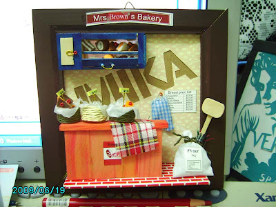 | 我記得前幾年在雜誌就有介紹過這種做小巧家居模型的啫好,只是一直覺得我應該是太閒了才會想去做吧,哈哈,結果,因為Mika說過他將來夢想擁有一家麵包店(雖然他不會作但他會想要),我有一天在書局發現到這種小模型的製作包,就馬上查看了有沒有麵包店,嘿,結果,還真天殺的有耶!!所以,我就硬是買回家了,雖說組裝的過程也拖了很久,但還是給他做完成了,雖然有些車縫啦,手工等不是很精美,但好歹是我的一番心意啦!也只能這樣了,下次還是畫個圖給他就好了@@~! 先是從這堆原料開始的: 過程....拖了很久,很可惜沒有很多照片,所以就直接以成品現身吧: |