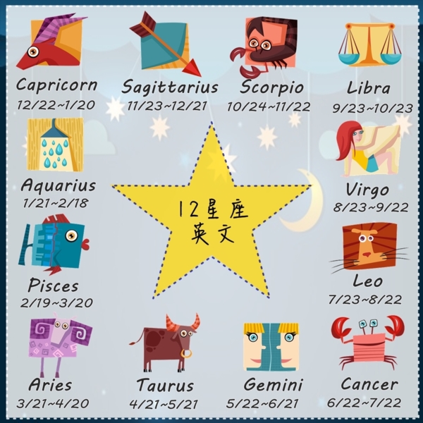 旅行的目的除了休息充電、體驗異國文化、欣賞綺麗風景外,也有人是想認識新朋友。但其實與剛認識的朋友聊天,或多或少都會覺得卡卡,該如何切入話題,化解剛認識的尷尬呢?小編建議你,不妨從星座開始吧! 星座是全世界共通話題,從星座展開,還能一路聊到個性,但你知道12星座的英文怎麼說嗎??代表的個性又是如何用英文表達呢?不如跟著小編一起瞧瞧吧!