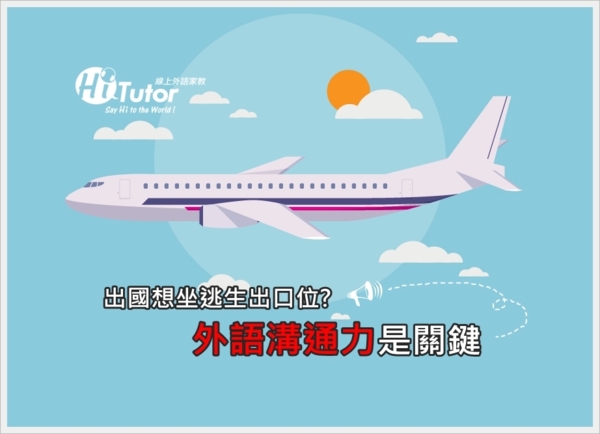 Emergency exit row seat 緊急出口座位 Flight attendant 空服人員 Evacuation 疏散 Aircraft 飛機 Securely 安全地 Escape slide 逃生梯 Inflate 膨脹 -------------------------------------------------------------------------------- 相關報導http://www.setn.com/News.aspx?NewsID=103585 其實真正的外語能力,並非只是搞懂單字或字句意思,發音也是很重要的一環。而真正會讀懂這些相關規定,也不見得真的代表溝通能力。因此HiTutor每次50分鐘課程,讓你1對1與老師情境式練習,大量訓練口語及聽力,出國旅遊絕對不卡關。 全程一對一,不用出門人擠人 免費專線:0809-090566 線上客服Mail :hitutor@hitutor.com.tw Skype:hitutor-cs |