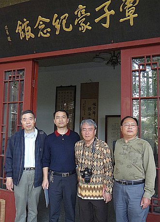 雲鶴、洪家聲、莊家裕與廣漢市的同志等,在紀念館前留影,依依不捨的告別了「跨海詩人」的故鄉,從川西上空翱翔著飛往廈門轉菲律濱,我們向雲鶴先生回贈: