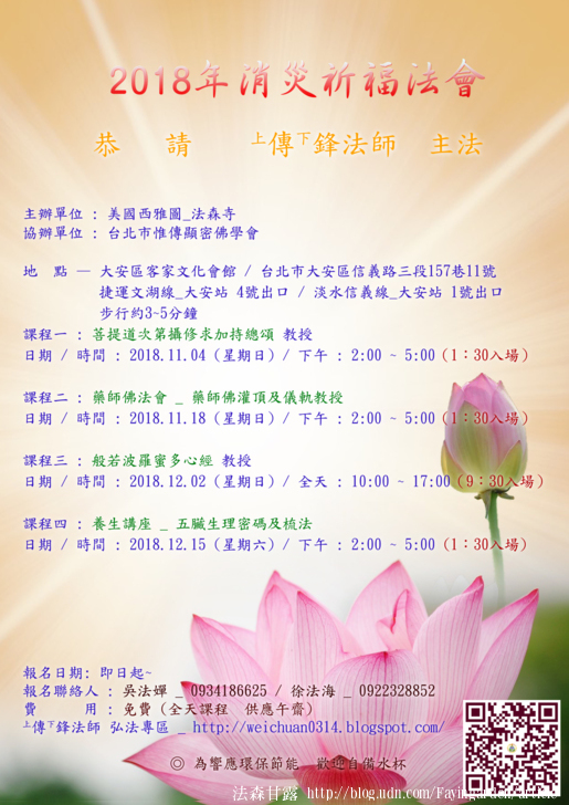 2018消災祈福法會 網路報名連結: 請在"你的回答"欄目上報上大名及人數即可。謝謝您!