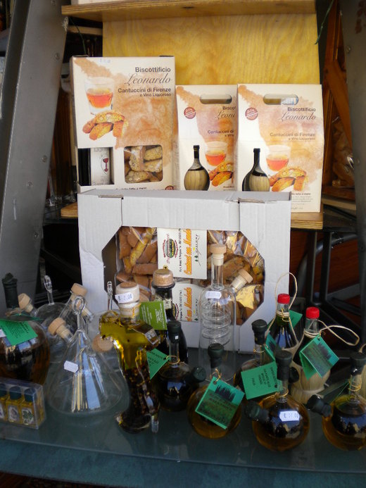 假日就來欣賞很有樂趣的托斯卡尼假日市集(holiday market);因為我們是星期六遊西恩那(Siena)和聖吉米納諾(Sam Gimignano),星期天人在比薩(Pisa)和盧卡(Lucca),我只能姑且猜猜這些路邊攤販(street vendors)應該是假日才出來擺攤的。對於外國人而言,看看這些很托斯卡尼風(Tuscany style)的商品還挺有趣的,對於我個人而言啦!但我一樣也沒買,因為不會做義大利料理,又怕裝紅酒橄欖油的瓶子搭飛機時弄破,唯一的消費是請同行朋友在照片中其中某一攤喝義大利柳橙汁,對這些路邊攤老闆感到不好意思,還一直給人家拍拍拍…….。 |