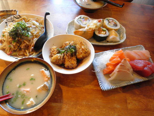 Photo #1 :桌上的菜色這樣全部 NT$550 (漏掉草蝦沙拉,沒入鏡) 「人在江湖,身不由己」,又在外吃美食了,很好吃,人也很好,只是常常在外吃美食,真不好意思,有時候是Flo主動性的-就是自己很想吃、又很久沒在外吃美食的情況下;有時候是Flo配合性的-沒在自己計畫中的吃,但吃起來還是不錯吃。今天是後者。 這一家日本料理-太田屋(就在桃園市中山路Ikea正對面),網路上已經有很多很多人介紹,大家可以來我們桃園市吃吃看,這一家生意真的很好,不輸上一次我去的內湖金泰日本料理(無敵定食那一家),所以想來吃的人要有排隊的心理準備。