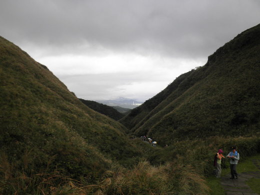 『秋天裡的桃源谷,清爽平整的草皮及白色五節芒十分美麗,略帶橄欖綠與咖啡的光滑山丘,讓我聯想起一直想去的菲律賓宿霧薄荷島之巧克力山(Chocolate Hills);這一天的桃源谷山上時而涼風徐徐、時而飄雨、時而雲霧裊繞、時而陽光灑落。』__Flo 昨天秋老虎繼續發威,福樂(Flo)透早六點就出門,出去一整天,晚上回到家發現整個脖子一大圈都是紅紅的烙印,紅潤健康的像是秋老虎之吻,也是爬山六個小時的成果寫照。 上個月就報名桃園縣山岳會大千隊達哥主辦的「草嶺古道桃源谷一日登山活動」,星期天清晨六點集合從桃園市出發,我們先從位於新北市瑞芳的遠望坑登山入口,進入草嶺古道(Caoling Historic Trail),往上走懸接桃源谷(Taoyuan Valley),然後從位於宜蘭縣的大溪段步道下山,據說我們全程共走13公里。跟團上山的好處是:你可以全程走完,欣賞到不同的風景,不用折返到登山原點去開車,除非你有請司機幫你開車。