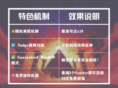 游戏背景设定于埃及神话圣山,象征命运力量的“星辰之卡”正等待真正的王者归来。每位玩家进入游戏,都将面对法老与女王之间的权力争夺——而你,或许就是最后的赢家。 核心玩法解析《法老牌》虽然采用 3轴1行设计,但其 特殊功能超强存在感: ✨ 随机乘数最大x10