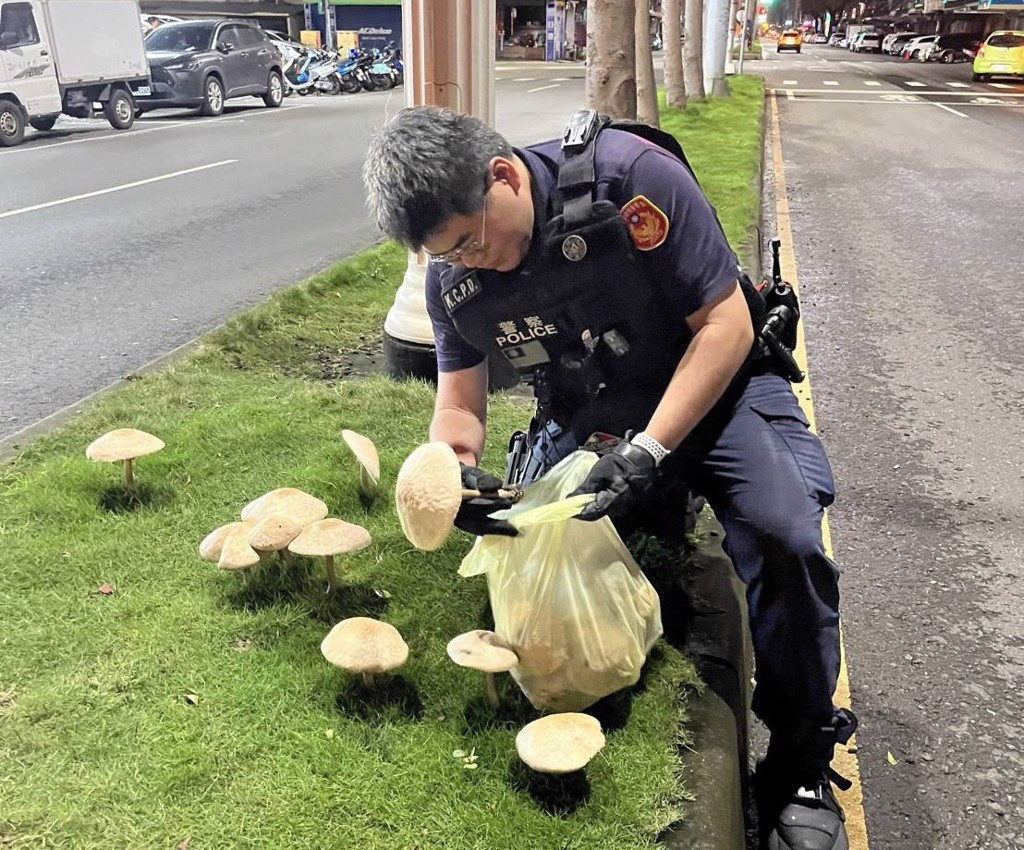 高雄市日前連日大雨,鳳山地區的一處道路分隔島上長出朵朵「香菇」,成了雨中奇景、打卡景點。轄區警方5日凌晨發現此分隔島吸引用路人圍觀拍照,為維護安全,連夜摘除,正式跟大家「Say菇掰」,也讓網友哀號「菇菇被摘除了」。
