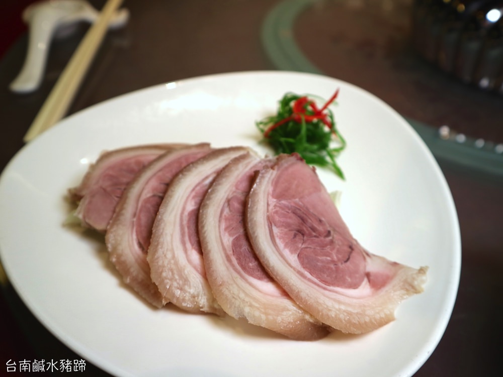 ▼《台南鹹水豬蹄》:鹽漬的豬蹄,吃起來完全沒豬腥味,上方的蹄皮口感Q彈,豬肉薄切扎實卻不柴!