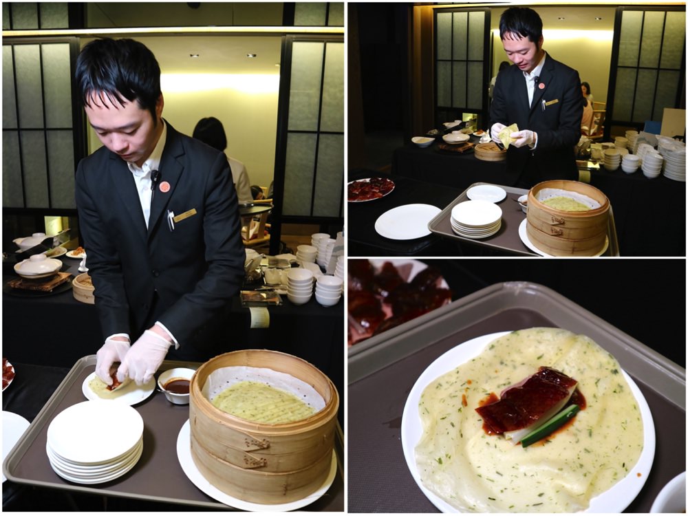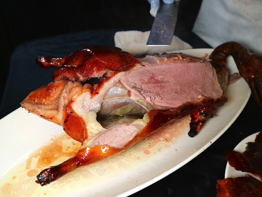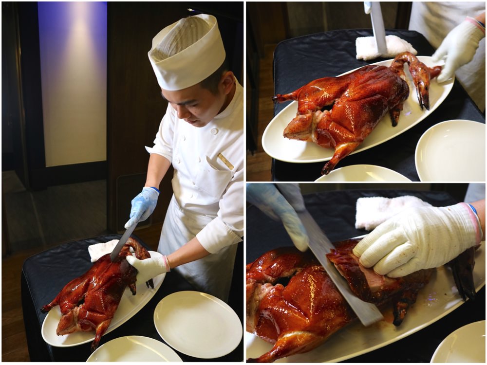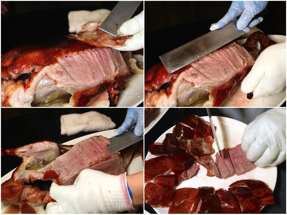 印象中,他們有規定,一隻烤鴨一定會片成16份, 剩下的就是送回廚房繼續料理囉!