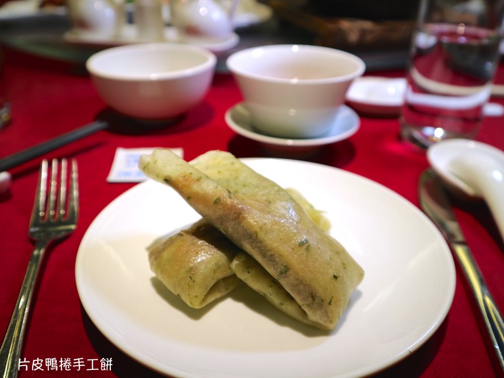 烤鴨七吃-片皮鴨捲手工餅▼整隻烤鴨送上,第一吃就是"片鴨捲餅"。 桌邊服務,直接現片現包。而且,每隻鴨能片的鴨肉捲數是相同的,代表選用的烤鴨都是差不多的大小呢!!!