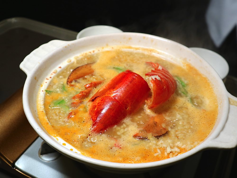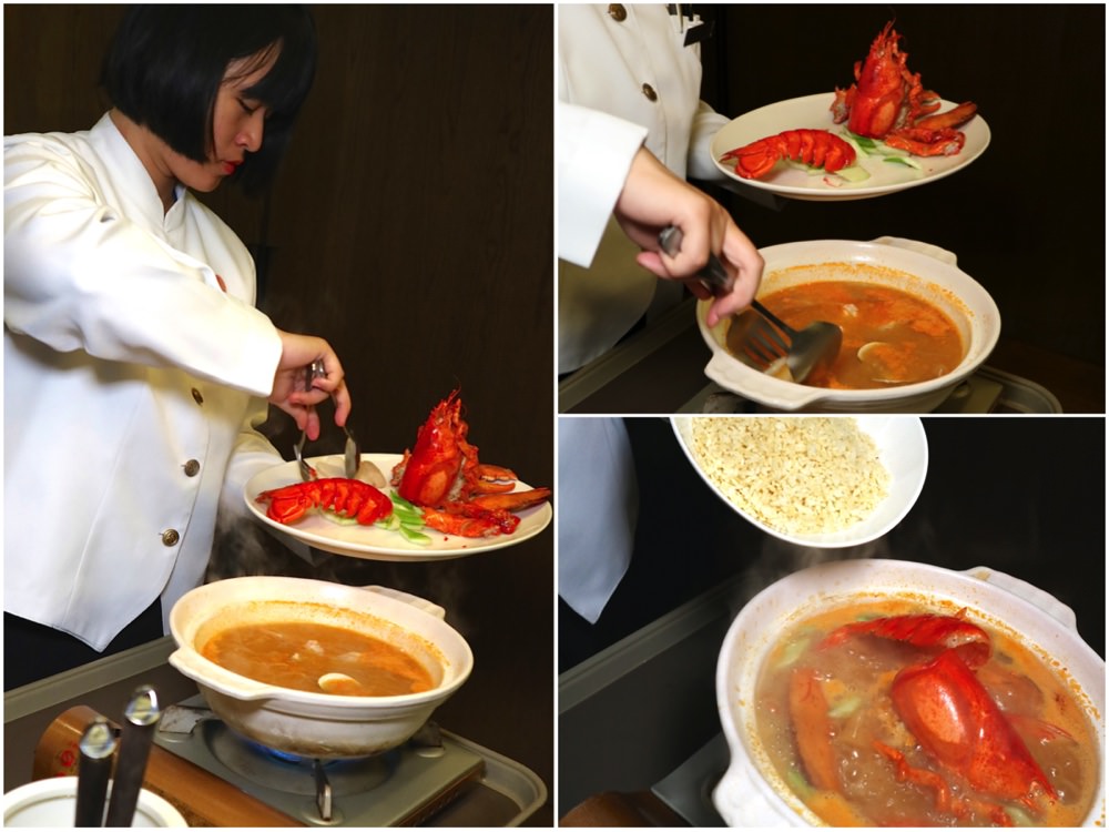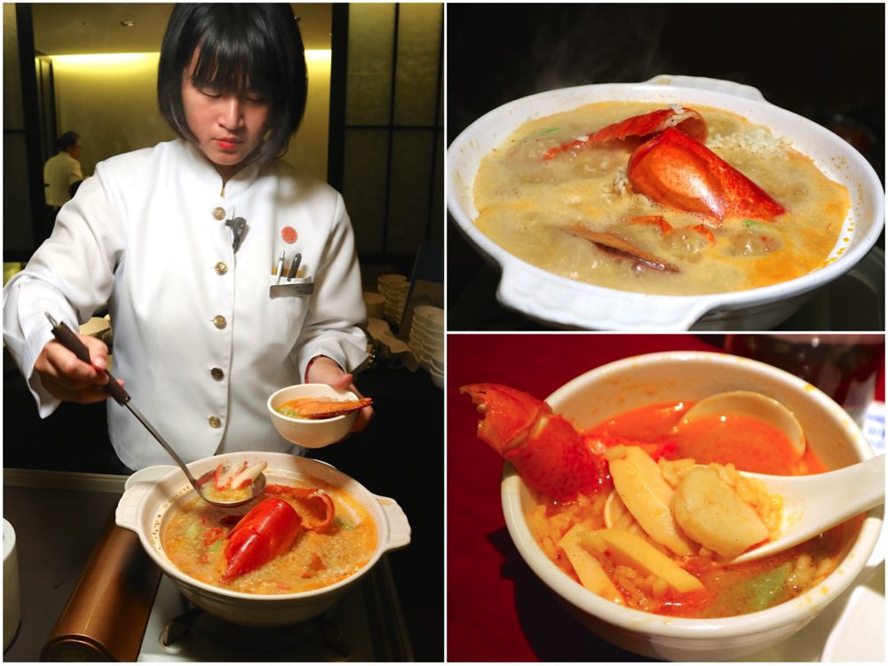 這裡另有一道,飯店大推的招牌料理:《龍蝦海皇湯泡飯》 一整隻“緬因龍蝦”,加上各種新鮮高級食材(蛤蠣、蟹肉棒、干貝、鮑魚),一起烹煮成鍋。 搭配先烤後炸的台灣越光米,是道非常奢華,又非常美味的特色餐點!!!