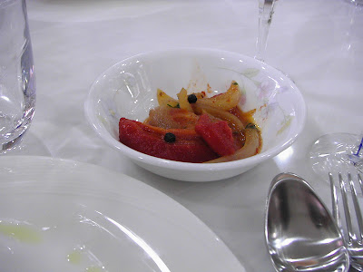有點煙燻橡木桶的味道,入口順滑,好像沒什麼層次感,因為已經上下一道菜時,準備下一次96分的酒時要趕快喝掉,那時感覺好像沒什麼變化,不知道是不是我們等得不夠久?還是功力不足?不然應該請憲哥表演一下神之雫的醒酒技術。