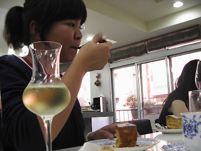 我們吃得很認真,Bonnie 認真做筆記,她正在寫.... 不愛喝的酒不要拿來入菜! (這樣看得到, 我隨便你!!扯~)