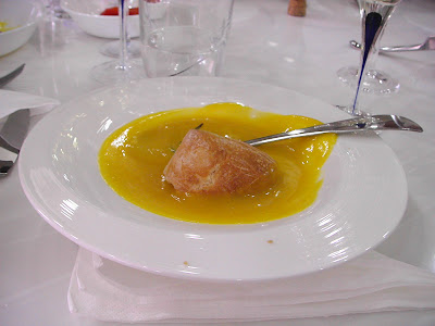 麵包在這裡才有照到, 只是浸在南瓜湯裡, 我都包好歹也吃了五六個, 每一道菜都用麵包把醬汁沾得一乾二淨的, 真是盤底朝空。