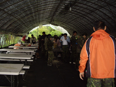 以下這張應該開放猜猜看,這位是哪位仁兄?猜對有講! 認得出來嗎?以下這兩位,是經過第一場紅軍攻擊,藍軍防守後,兩人說幹掉紅軍奪旗吧!! 當然.... 看到以下這張, 就知道藍軍9條好漢, 奪旗成功嘍, 當然是 由曹老大以一夫當關之姿奪旗嘍。 午餐時間到了,到烤肉區烤肉,場地老闆人很好,幫我們煮了一大鍋熱騰騰的麵!天氣很冷,很適合吃上一碗,我看到有人吃了好幾碗。也突然發現,怎麼很少人在此時多照一些相或照吃了什麼東西,其中一個原因是我的相機沒電了。另一個原因是......大家太餓了, 忙著吃!!