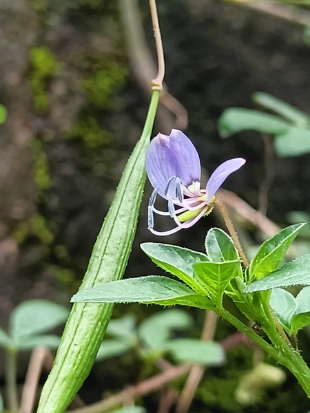 平伏莖白花菜不開白花 平伏莖白花菜並不少見,但不容易被發現,因為莖是平伏在地面上,因為花小,因為大部分長在低海拔路旁,溪流兩岸和荒廢地等不會被人們注意的地方」。 近日在一處公園的岩壁上發現平伏莖白花菜,它原來是長在公園階梯旁的花台,後來被除掉了,改種桂花和仙丹花。沒想到近日它竟然在岩壁上另謀活路,長出了葉,開出了花。也就是因為它紫色的小花吸引了我的注意,靠近岩壁才發現平伏莖白花菜存活了。往階梯上走再看看兩旁占了平伏莖白花菜地盤的桂花和仙丹花叢,裡面竟然硬生生擠出一兩株平伏莖白花菜,這種生命力令我佩服。 平伏莖白花菜名字有何說法? 明明不開白花,也不是人吃的菜,為何取名白花菜? 一、以下摘自2020年08月30日環境資訊中心刊載【自然谷之星】“”平伏莖白花菜 台灣紋白蝶的最愛(文:吳佳奇(自然谷環境信託基地專案經理)(https://e-info.org.tw/node/)一文: 命名非常有趣,名字有「白花菜」,但花色卻非為白色,然後也非可以吃的野菜;名字中有「平伏莖」,又確實描述了這植物的特性,不難發現,平伏莖白花菜的莖就是這樣臥倒、平伏、散開在地面上,但又不屬於匍匐莖。 平伏莖白花菜別名「皺子白花菜」,因其種子外表具有許多脊狀皺紋。 「我的看法」:平伏莖白花菜還有一個別名「皺子鳥足菜」,這個別名就沒有落入「白花」的認知錯亂。 二、以下摘自2012.09.09(https://www.moxa.org.tw/)石英“平伏莖白花菜”一文: 對植物較陌生的人初聽白花菜之名,應該都會認為這是一種開白色花的植物,說不定還會以為是菜市場裡賣的白色花椰菜。待實際見到平伏莖白花菜的紫色花朵,不免會懷疑是不是自己認錯了?不然就是取名的人辨識色彩的能力有問題! 其實它是冠上「屬」名的植物名稱,這類型的植物名稱其實相當常見,像懸鉤子屬裡面 41 種植物中就有 33 種植物以○○懸鉤子做為植物名。植物分類階層上的「屬」在命名時,需要從該類群的植物中選定一個物種做為屬的模式依據,而白花菜便是這白花菜屬的模式種,台灣有三種較常見的白花菜屬植物, 其中只有模式種白花菜是白色花,而平伏莖白花菜是淡紫或粉紅色,另一種則是開黃色花的向天黃,而冠上「白花菜」的植物確實容易讓人對花色有所誤解! 「我的看法」:從第二段來看,同屬白花菜屬的向天黃(又名黃花菜、黃花草)也沒有因為是白花菜屬,就在名字上冠上“白花菜”。所以開紫花的平伏莖白花菜的名字為何冠上“白花菜”,或許還另有說法吧? 平伏莖白花菜奇妙的種子傳播 以下摘自2012.09.09(https://www.moxa.org.tw/)石英“平伏莖白花菜”一文: 仔細看平伏莖白花菜的種子,每顆種子在靠近種臍的地方彷彿戴上一個白色頭冠,這可不是為了美觀之用,它其實是富含蛋白質與油脂的油質體(elaiosome),這對螞蟻相當有吸引力,牠們會把種子搬回巢穴儲存起來當食物,不過牠們只對油質體的部分有興趣,其餘的部分則棄置於巢穴中,而這樣的舉動等於幫平伏莖白花菜直接播種在土裡一樣,看來有效率又省事。 平伏莖白花菜基本資料 山柑科白花菜屬。別名:皺子白花菜。原產地:熱帶非洲至澳洲北部,目前廣泛歸化於亞洲各地。 莖:草本,全株散生毛,莖 5 稜,多分枝。莖直立、開展或平臥,分枝疏散,高達 90 公分,無刺,莖、葉柄及葉背脈上疏被無腺疏長柔毛,有時近無毛。 葉:互生,具 3 小葉,小葉橢圓狀披針形,有時近斜方狀橢圓形,頂端急尖或漸尖、鈍形或圓形,基部漸狹或楔形,幾無小葉柄,邊緣有具纖毛的細齒,中央小葉最大,側生小葉較小,兩側不對稱;側脈明顯 8~9 對,葉緣疏生毛。 花:花單生於莖上部葉具短柄葉片較小的葉腋內,花梗纖細;花瓣 4,粉紅色或淡紫色。 果實:果為角果,線柱形,表面平坦或微呈念珠狀,兩端變狹,頂端有喙;果瓣質薄,有縱向近平行脈,常自兩側開裂。花果期 6~9 月。 用途:蝴蝶食草:八重山粉蝶,紋白蝶,黑點粉蝶,台灣紋白蝶和紋白蝶幼蟲的食草。 以上資料摘自http://kplant.biodiv.tw/ 一、平伏莖白花菜的花