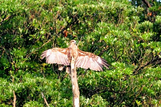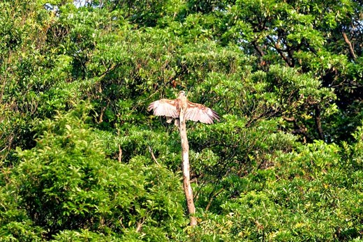 台灣老一輩民眾,對老鷹或黑鳶的這種猛禽的稱呼為「厲葉」,(台語發音)。了解台語的人,大多能心領和意會這個名號所牽引的意涵。相較下,比抓小雞還神。 身居山林的老鷹黑鳶,每日可能因為生活環境的露水,甚至於地形微氣候大小雨滴的影響,致使身體各部羽毛受潮。因此,上午會有「厲葉展翅」的日光浴時段。 老鷹是一種飛行技巧相當不錯的猛禽,看過兩隻老鷹間的「死亡墬落」般的對抓,那近M字型的雙翅,及短而靈活的尾羽,對照展翅時的自雄,一點也不意外。