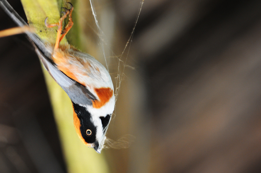 不過,自然觀察突然碰到的狀況,常常不是耐心等待,規劃和經驗所能比擬的。一隻紅頭山雀在我停憩時,突然出現在涼亭內部。嘿,有何貴幹?哦!原來牠來此「搬建材」。我想,春來了,牠應該要築愛巢,填充天聲和慾動吧! 一時之間,手忙腳亂,長槍對匕首,面對蒙面俠的造訪,事證尚在,請欣賞笑納。 話說,春天確是萬物蓬勃季節,月巡日轉,花開草長,新葉代謝,天候魔手,生活、生長、生存。大自然搭配好了育雛的環境,鳥類(當然不止鳥類)兩性身上的賀爾蒙也蠢蠢而動。蒙面俠找到愛侶了嗎? 紅頭山雀取用蛛絲網黏合草菽細枝,山椒鳥用綠色地衣偽裝巢穴外觀,猛禽鷹鷲屬的,摇擺地唌著粗枝椏飛來。印象中巧織的小小鶯,除了巢室外還會施工加個外門蓋。 班鳩喜歡取開闊處舖好草就就位,家燕還是喜歡回到民家下的泥窩。小雨燕除橋下石縫,部分也喜歡在野地就位,有的選擇在陡峭的河川泥沙璧挖洞築居呢! 春天的野外就是很熱鬧,吱吱咂砸,都是再交換最新的訊息。猶如人類社會,秋收滿載,準備典藏過年的味道。紅頭山雀忙,忙的很忘己,也很忘「我」。人類興奮、忙碌、快活的時候,是否也是如此,「不知死活」。
