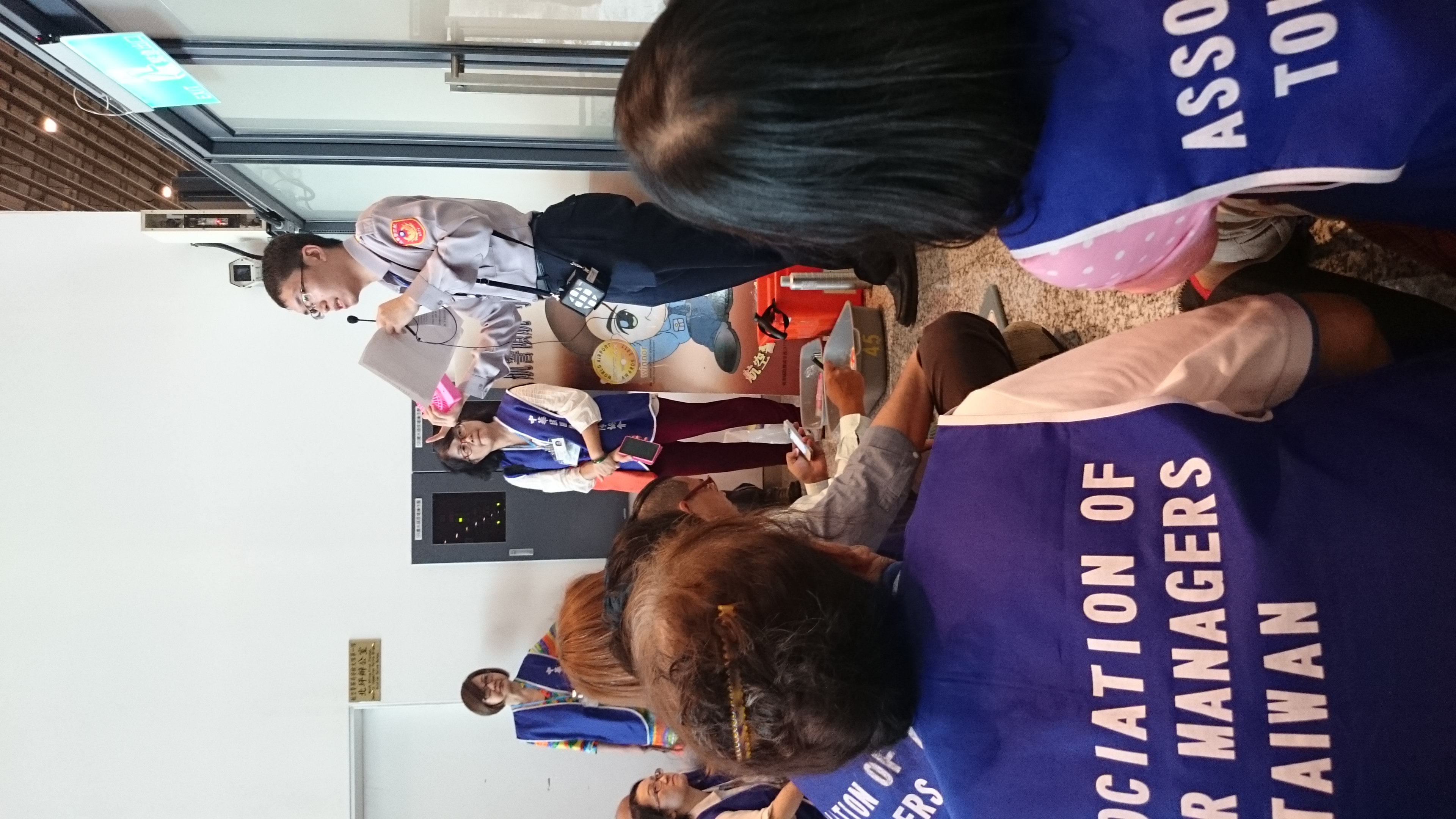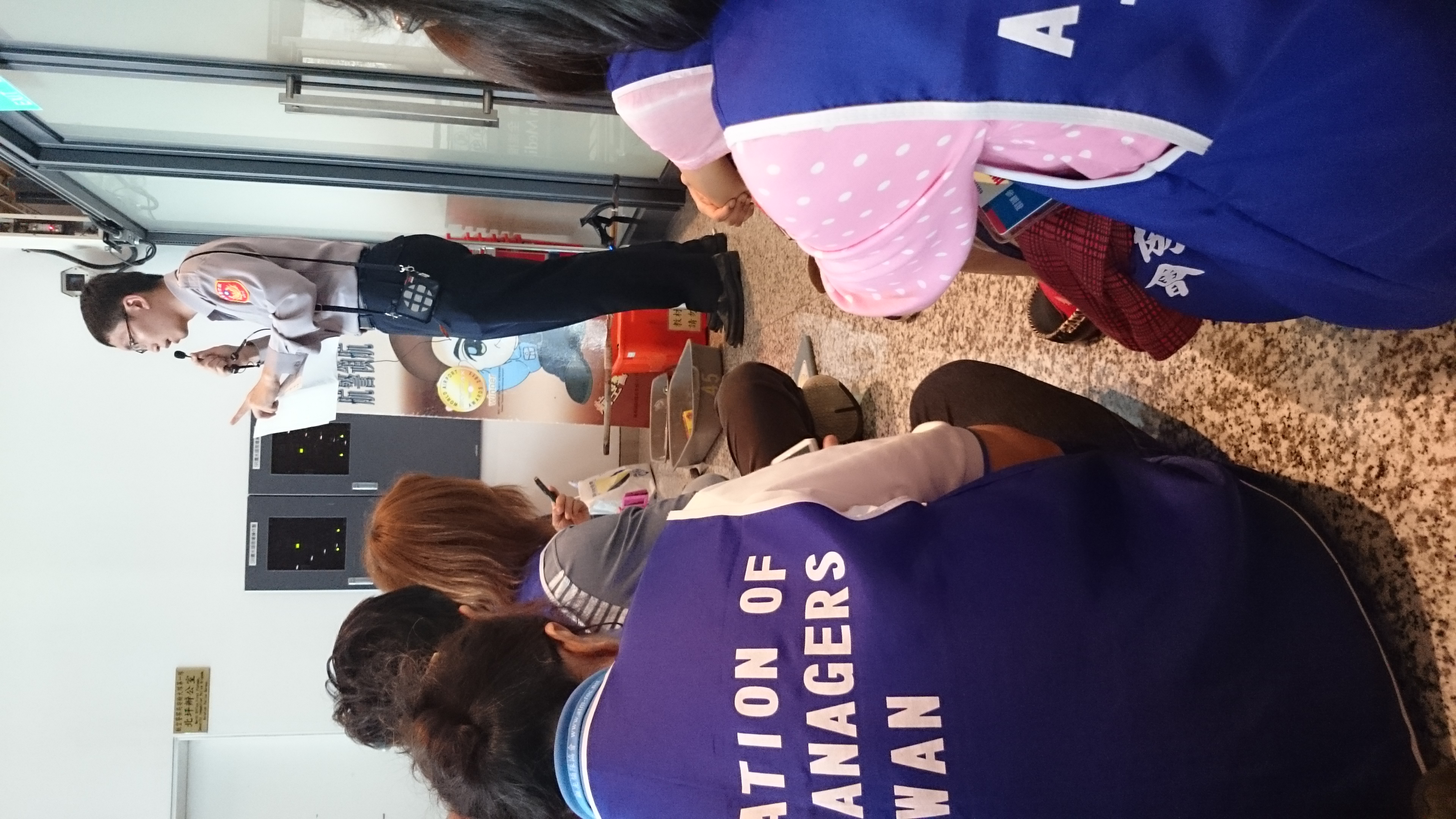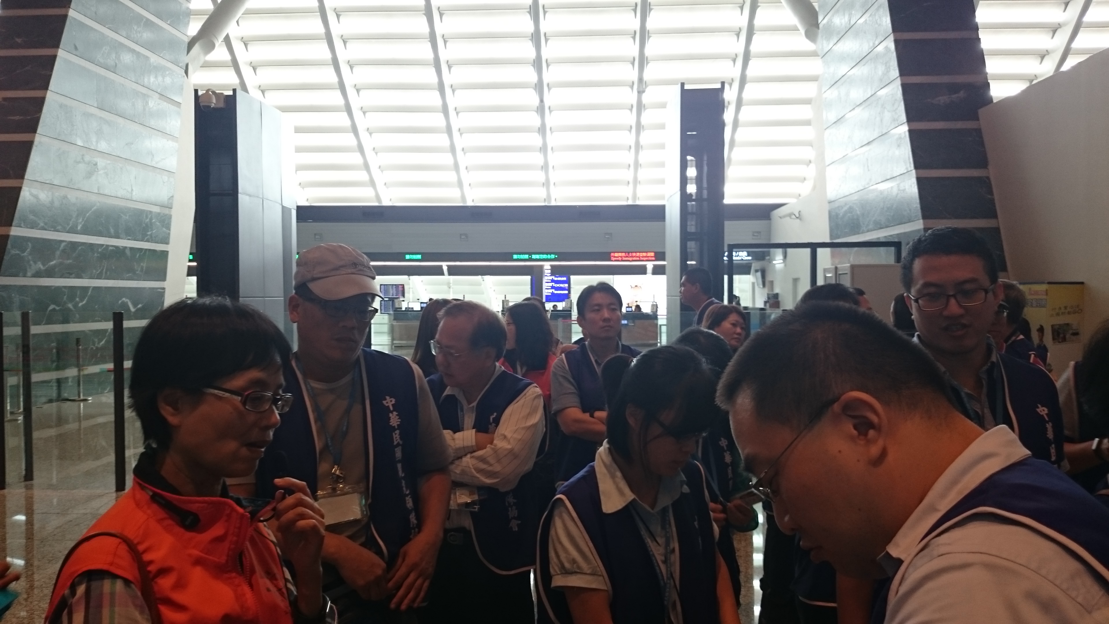 第五頁共34頁,從第一航廈的海關關務人員的解說到出關作業門口(裡面不能拍攝),從工作通道轉到行李領取轉盤並下樓回海關行政門口及二樓小客車停車大廳及旁邊大客車停車處。至下午4點50分左右上車離開機場,一小時後回到台北大學門口。