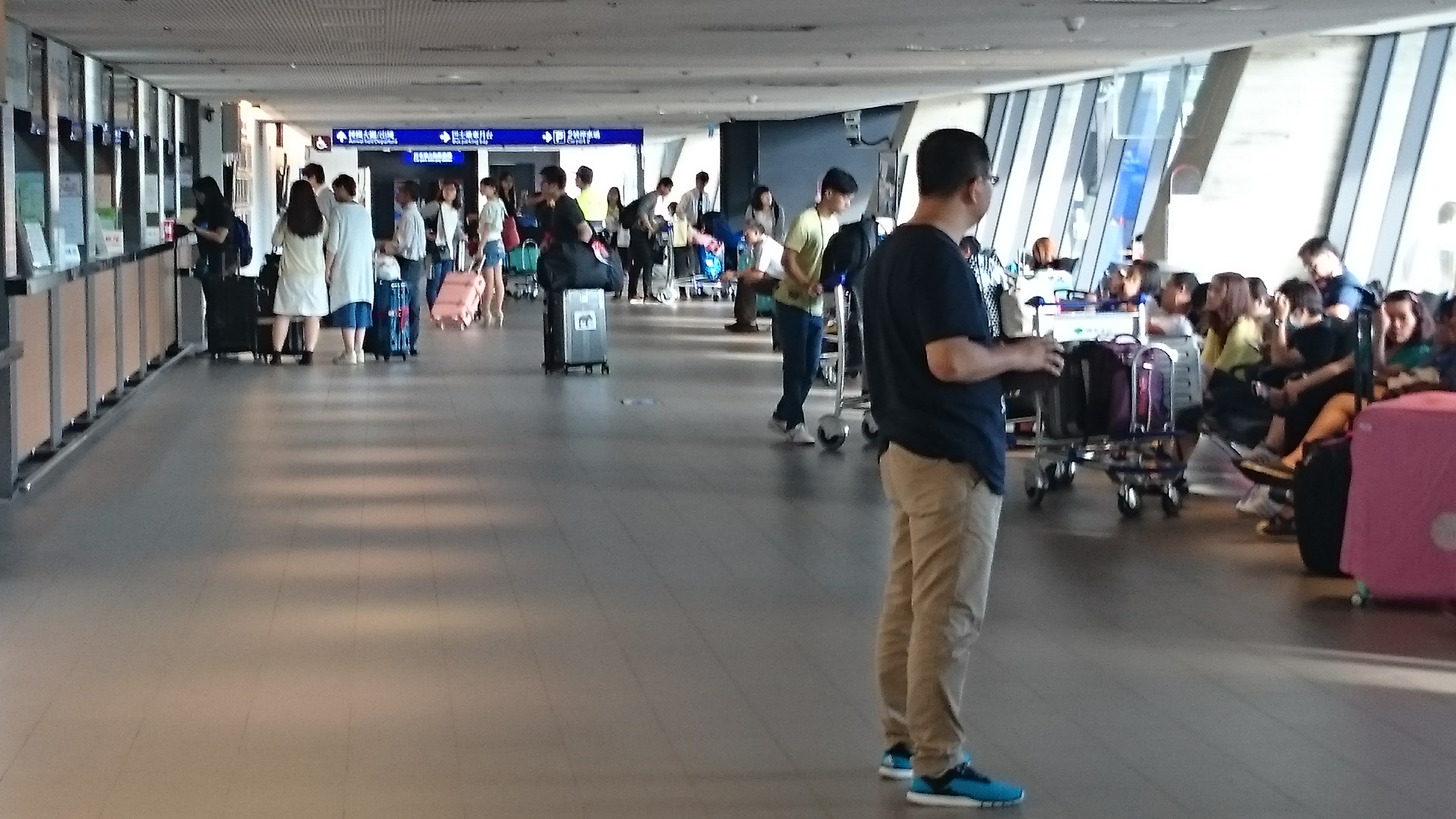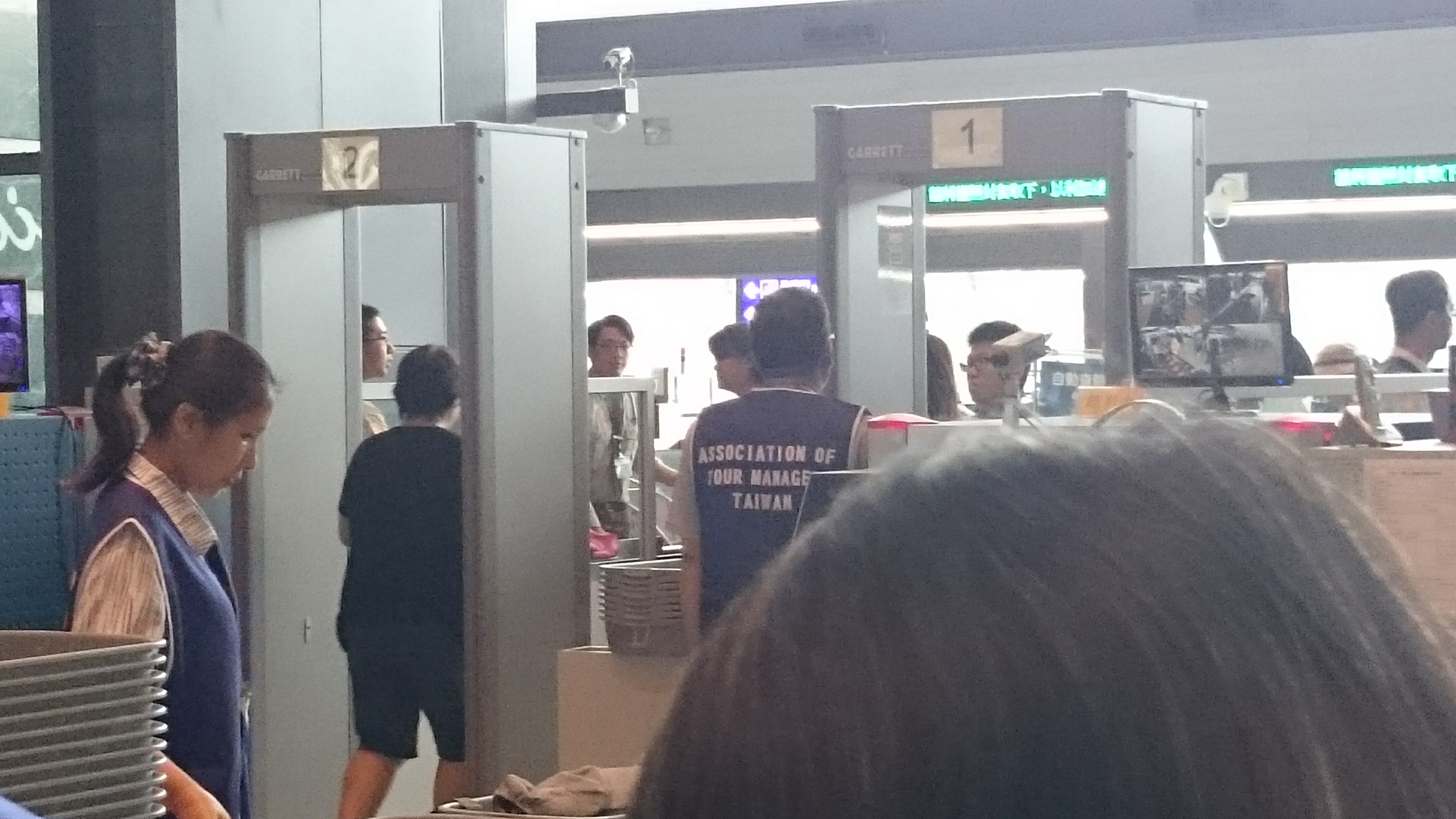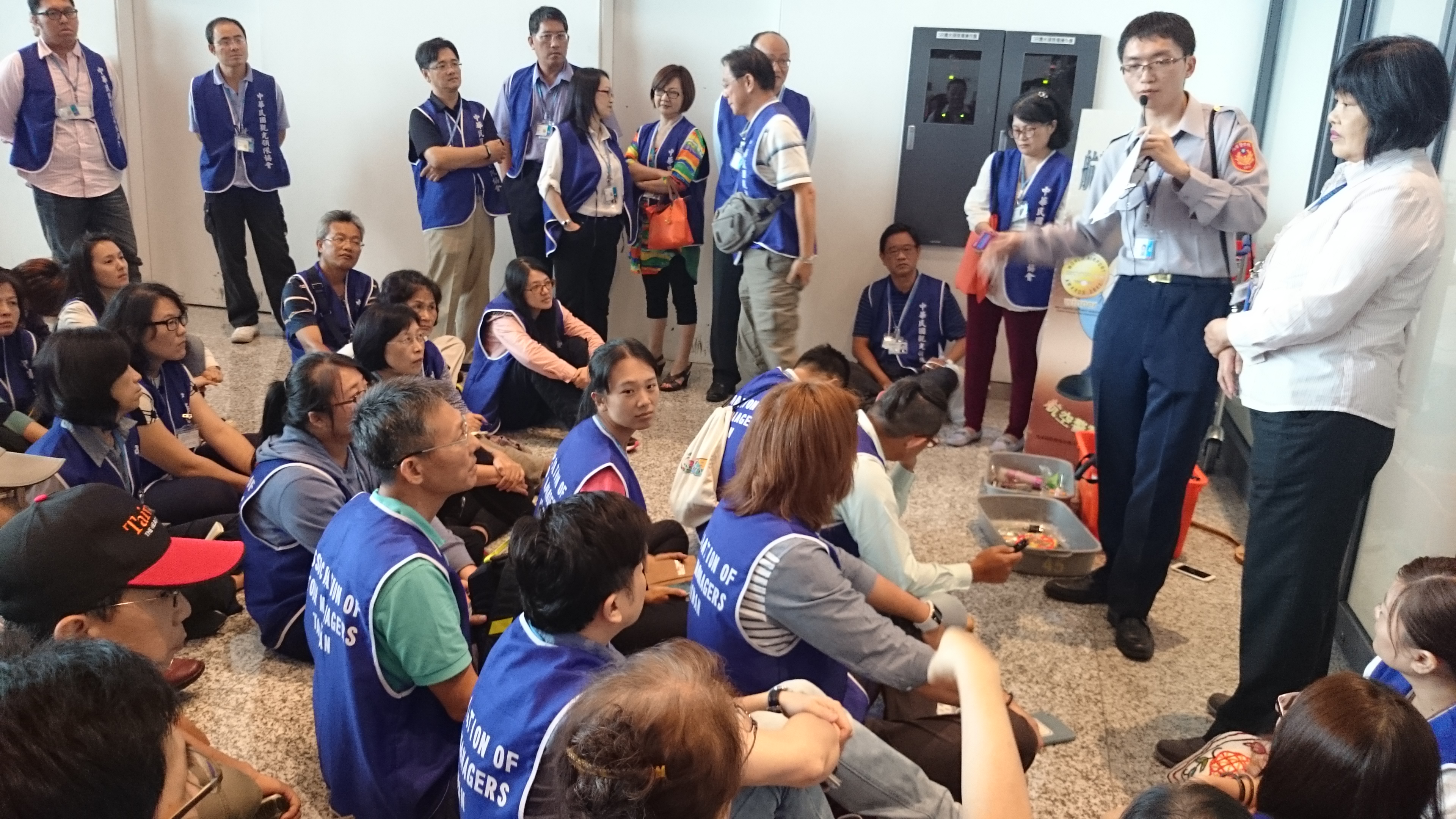 第五頁共34頁,從第一航廈的海關關務人員的解說到出關作業門口(裡面不能拍攝),從工作通道轉到行李領取轉盤並下樓回海關行政門口及二樓小客車停車大廳及旁邊大客車停車處。至下午4點50分左右上車離開機場,一小時後回到台北大學門口。