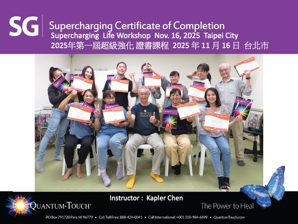 2025/11/16舉辦了超級強化課程,超級強化課程的內容延續了量子觸療初階的各項技術,藉由擴大程序有效地提高震動頻率,將能量提升三倍以上。另外利用12種色彩,與相遇點配合,進行更精準的療癒。 第二天的內容更是結合了北美印第安薩滿的技術,將宇宙的圖案及音頻運用在療癒及提高靈性方面,可以取得極大的效果。 課程結束前應同學們的要求,增加了豐盛儀式,大家圍成一圈,將錢包或財物至於中間,藉由薩滿唱誦及圖案再加上黃財神心咒,為每個人自己祈請豐盛加持,作為感謝大家參加今年唯一的一次超級強化課程。 敬請期待2026年,超級強化課程將再度與你相見!