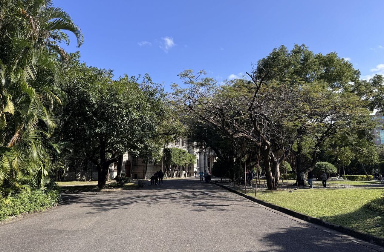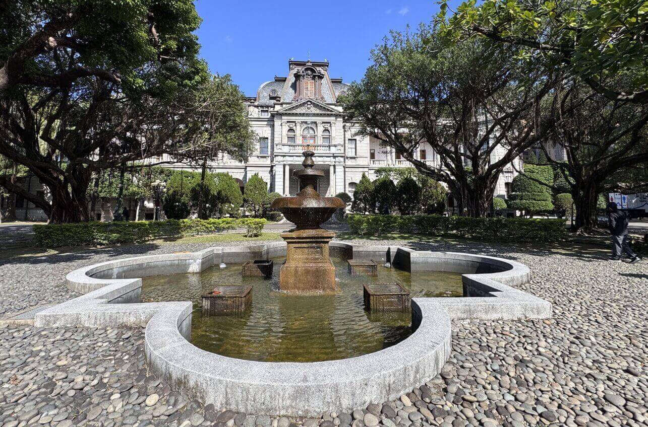 ↓一進大門,就可以感受到台北賓館的開闊、綠意盎然。正前方,是台北賓館的主建築,右前方,是南側的法式庭園。