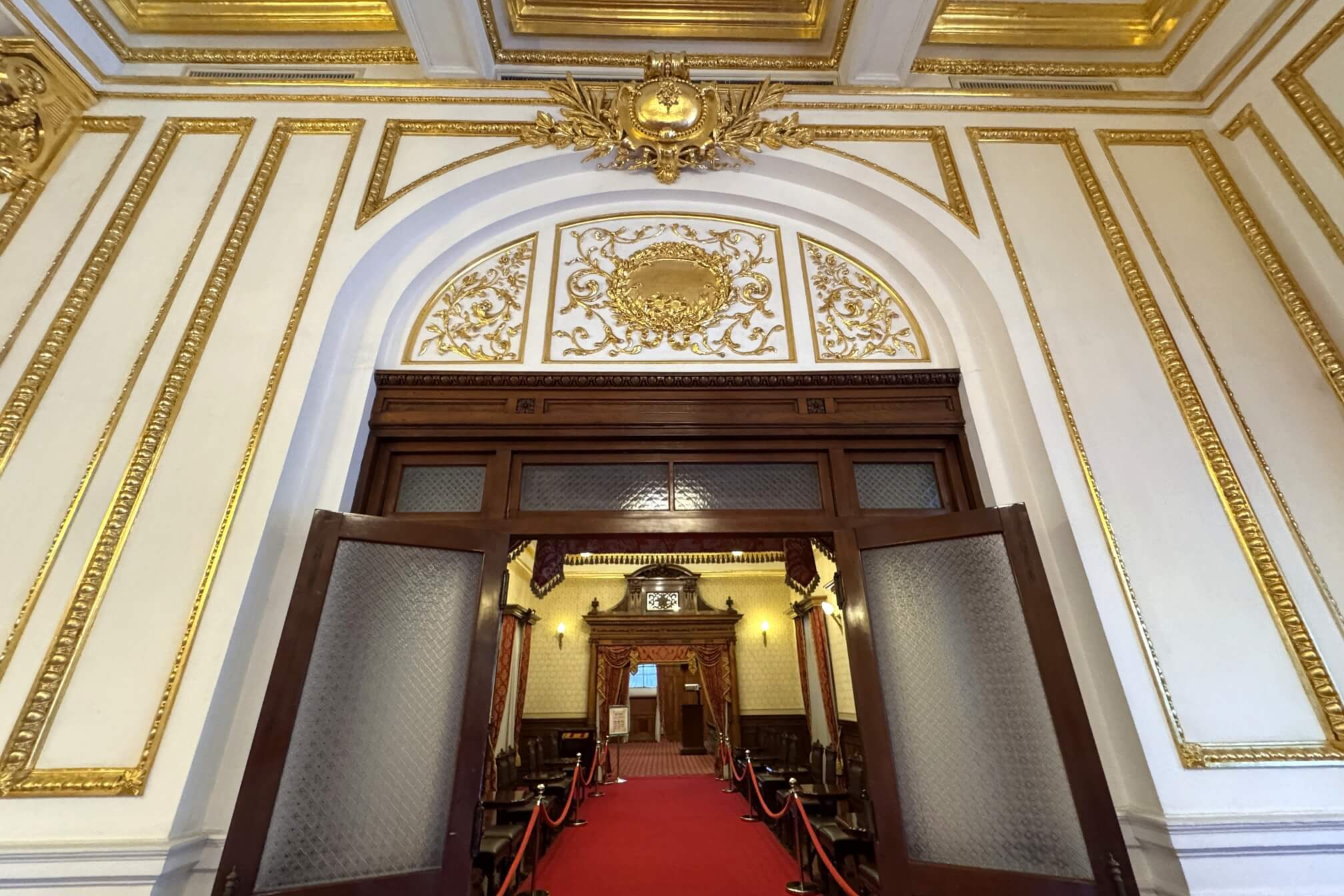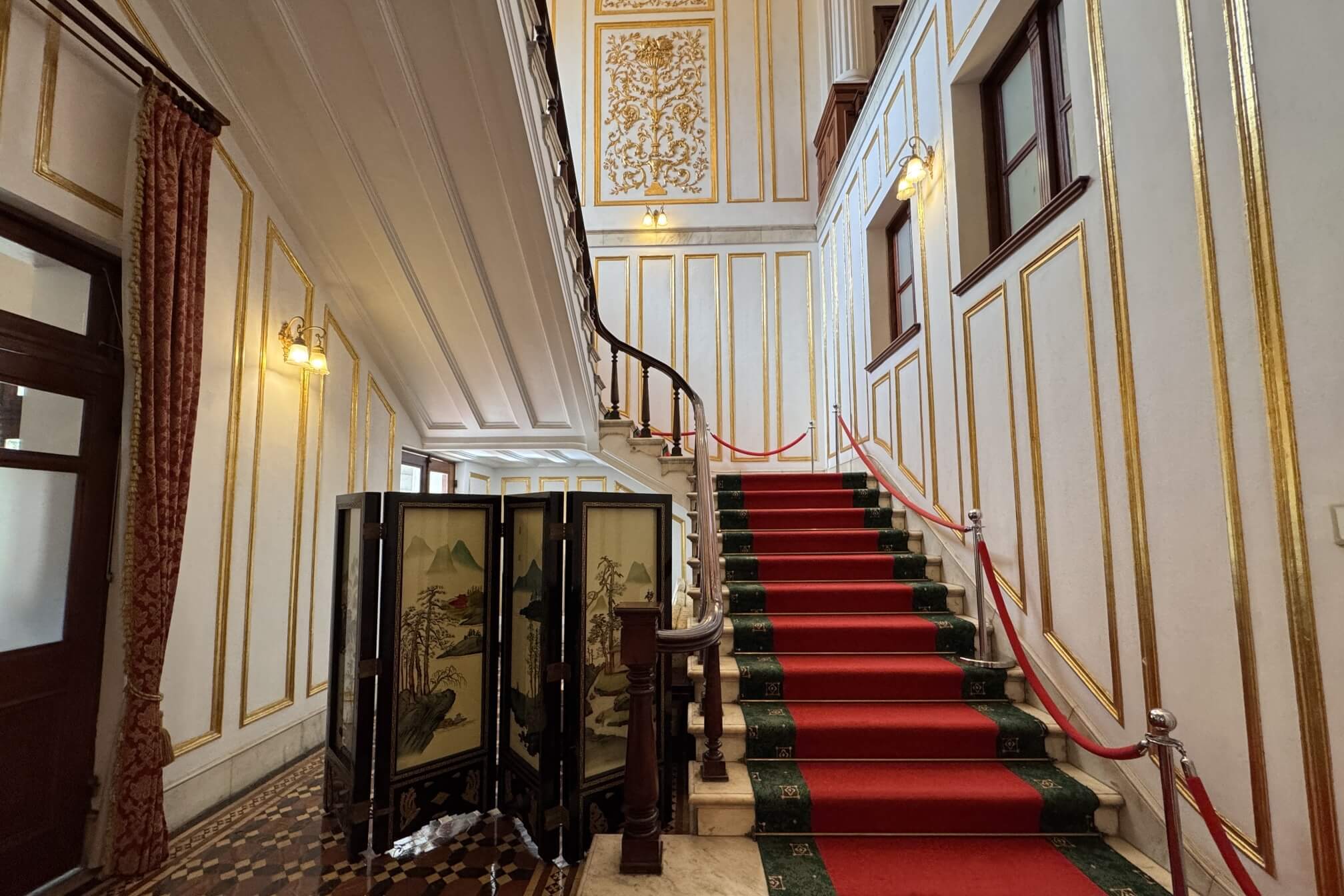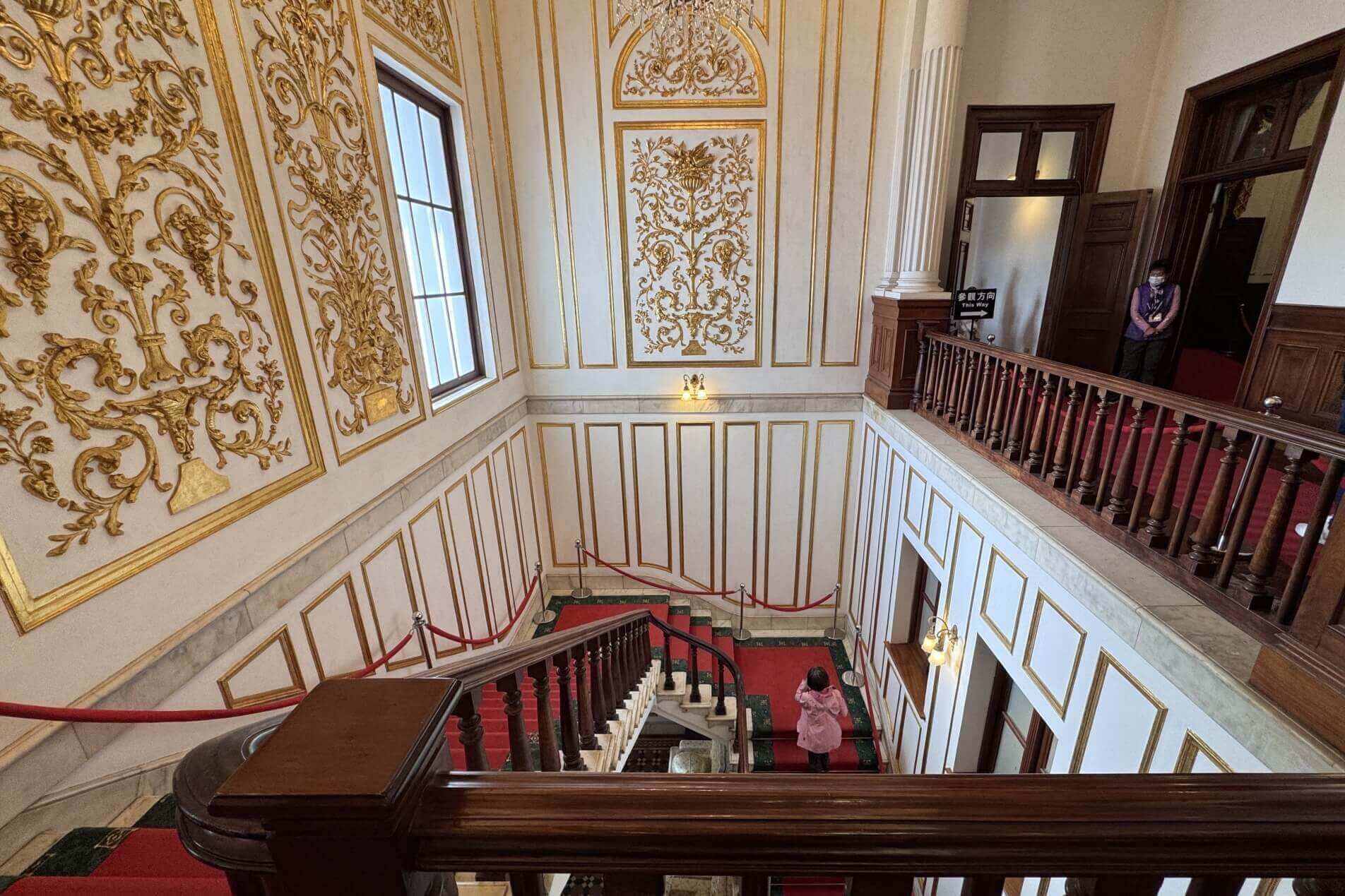 ↓一進到洋館主建築內,馬上感受到館內的富麗堂皇,舉目所及,盡是華麗的金色雕塑、線板及裝飾。