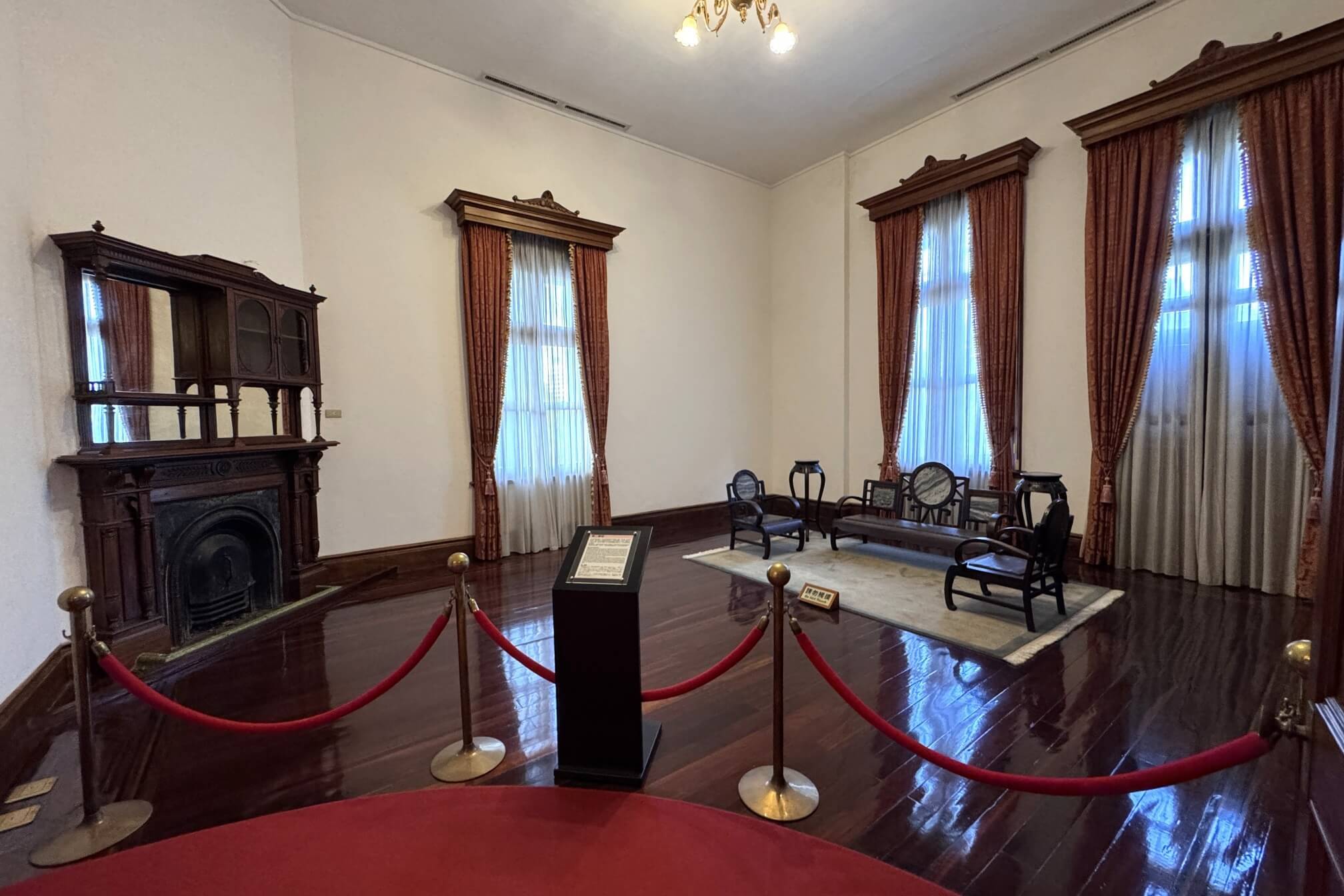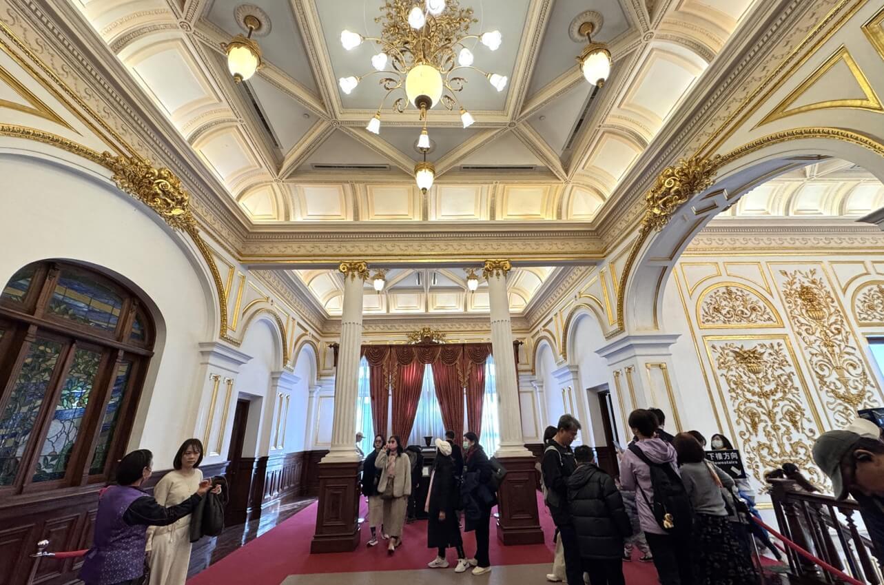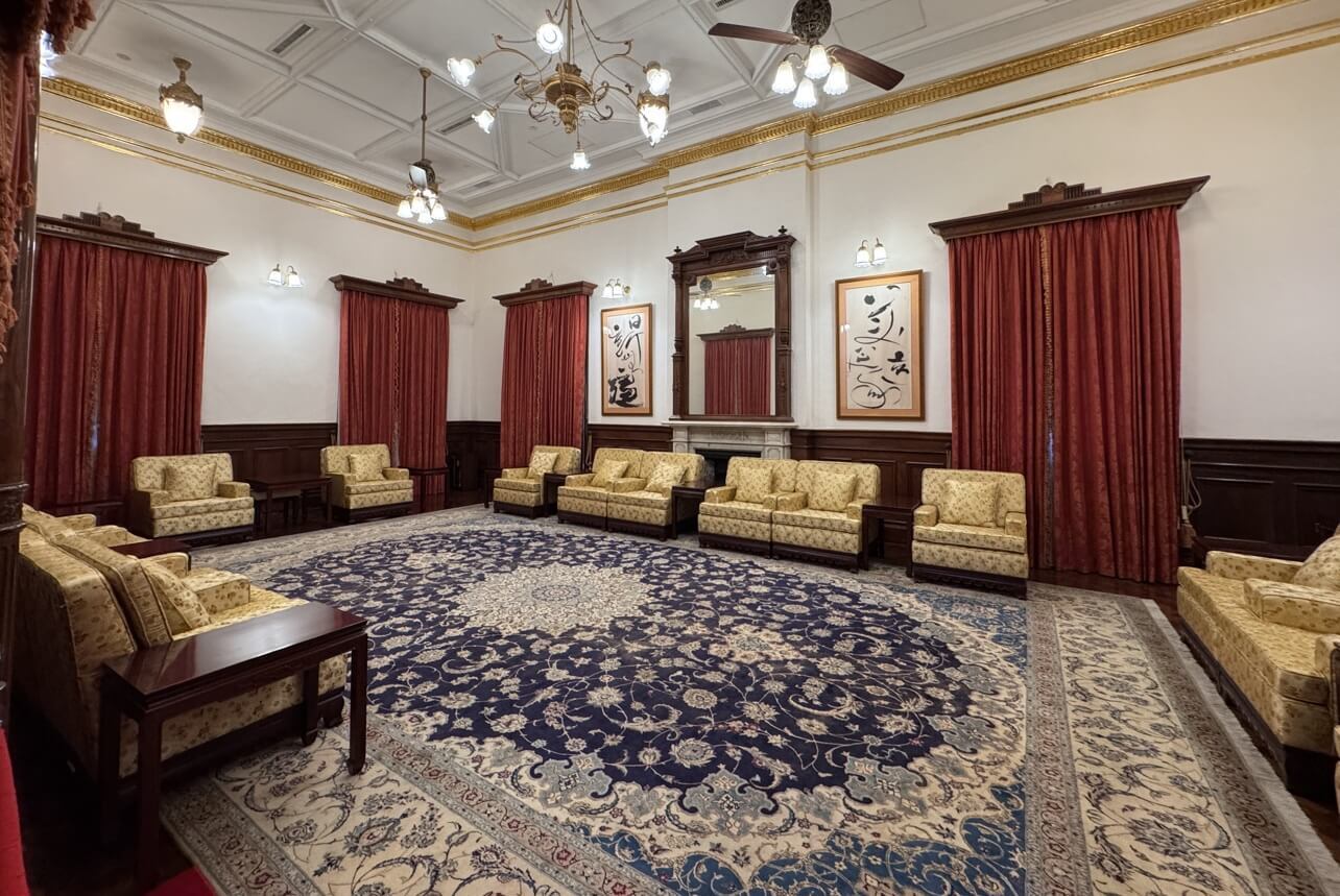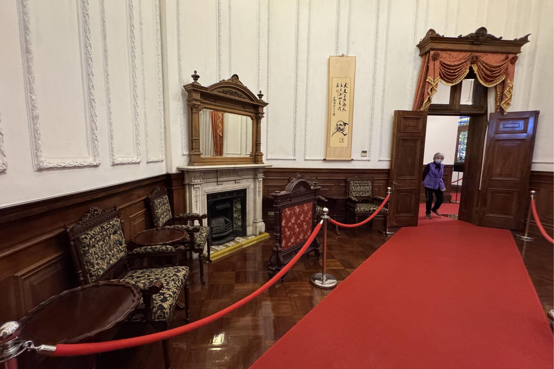 ↓大客廳地上鋪著毛絨地毯,是日本皇室貴族在台灣接受官民士紳拜謁的場所。