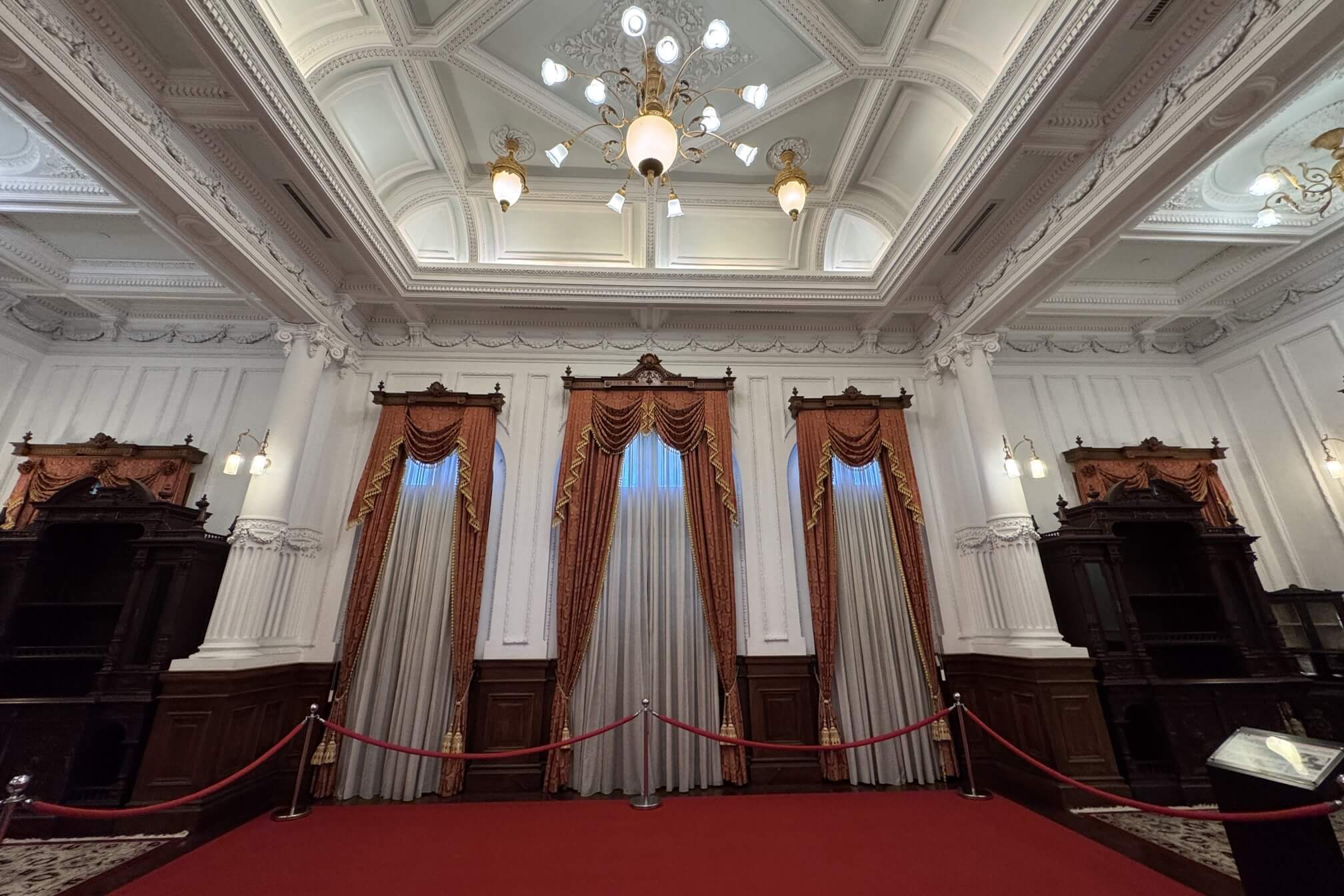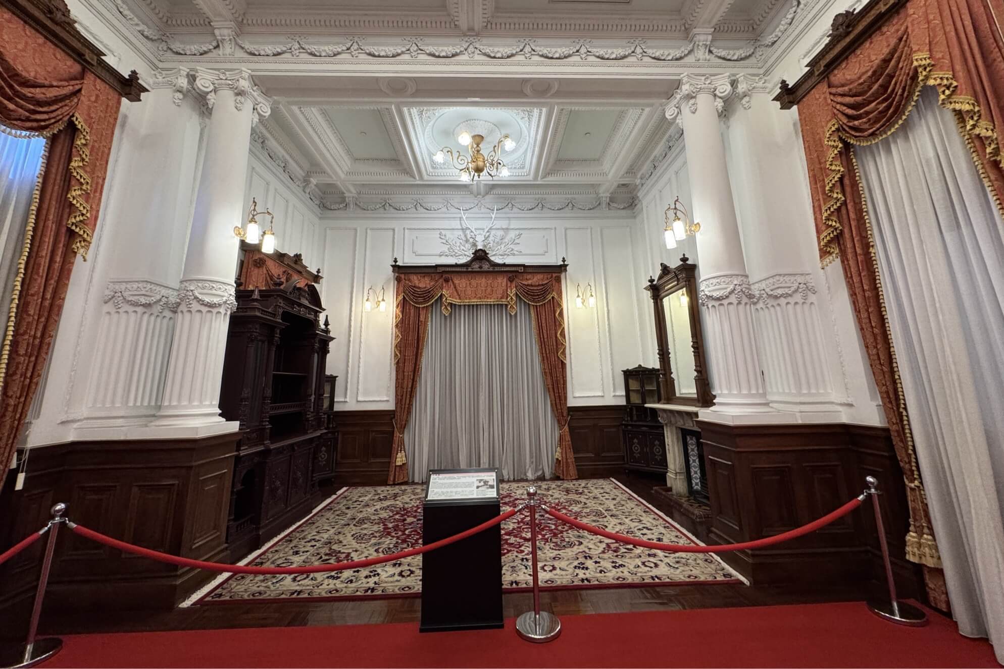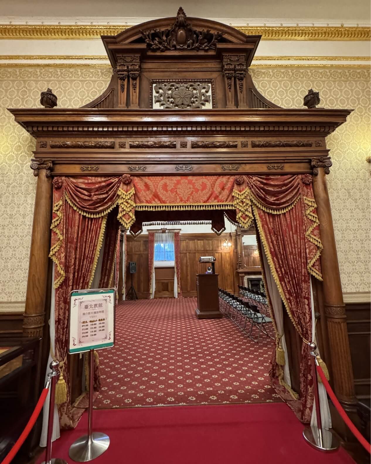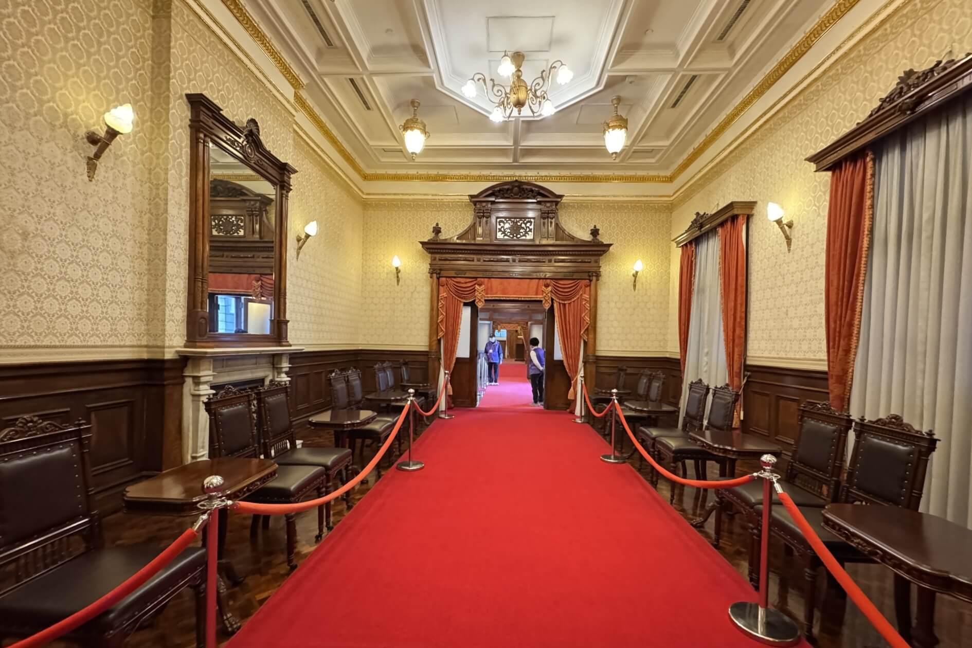 ↓大客廳地上鋪著毛絨地毯,是日本皇室貴族在台灣接受官民士紳拜謁的場所。
