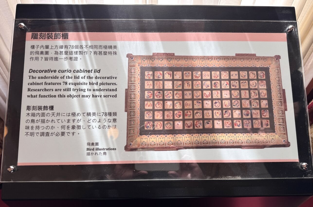 ↓剛剛從側面看到的「飛禽圖」,共有78種極為精美的不同飛禽圖案。至於其目的及作用,則尚待考證。