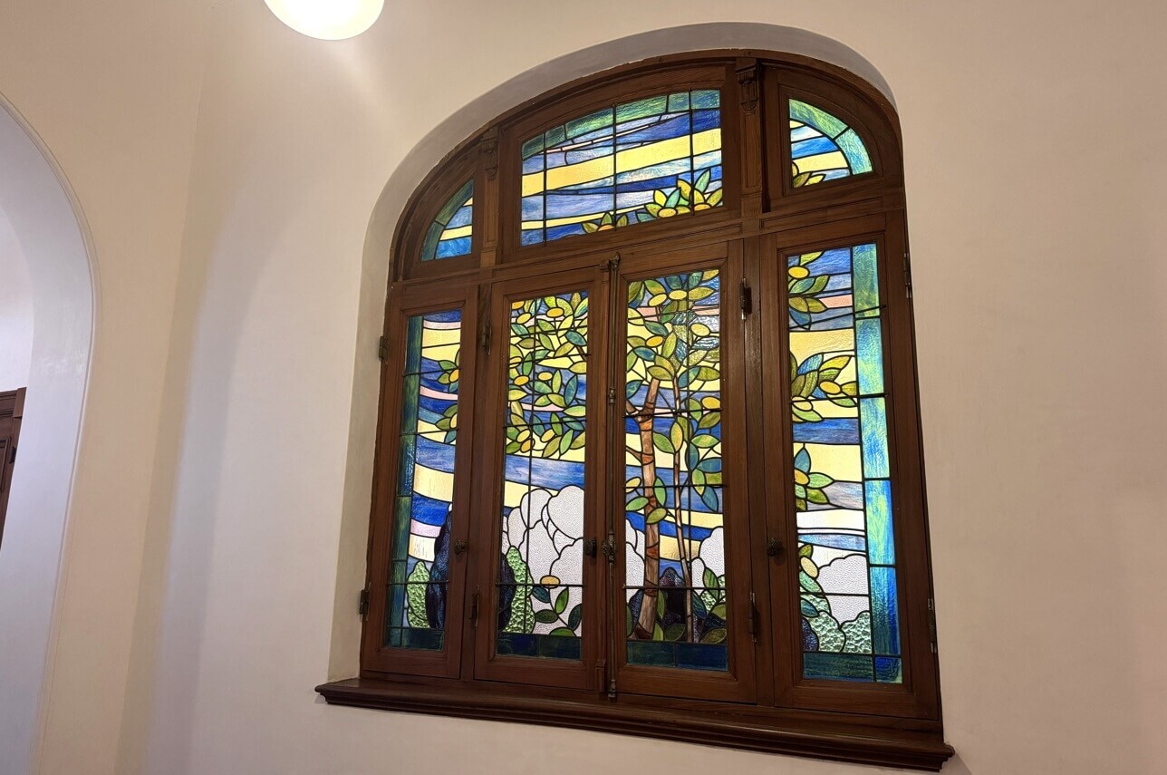 ↓二樓廳間牆壁上的彩繪玻璃。