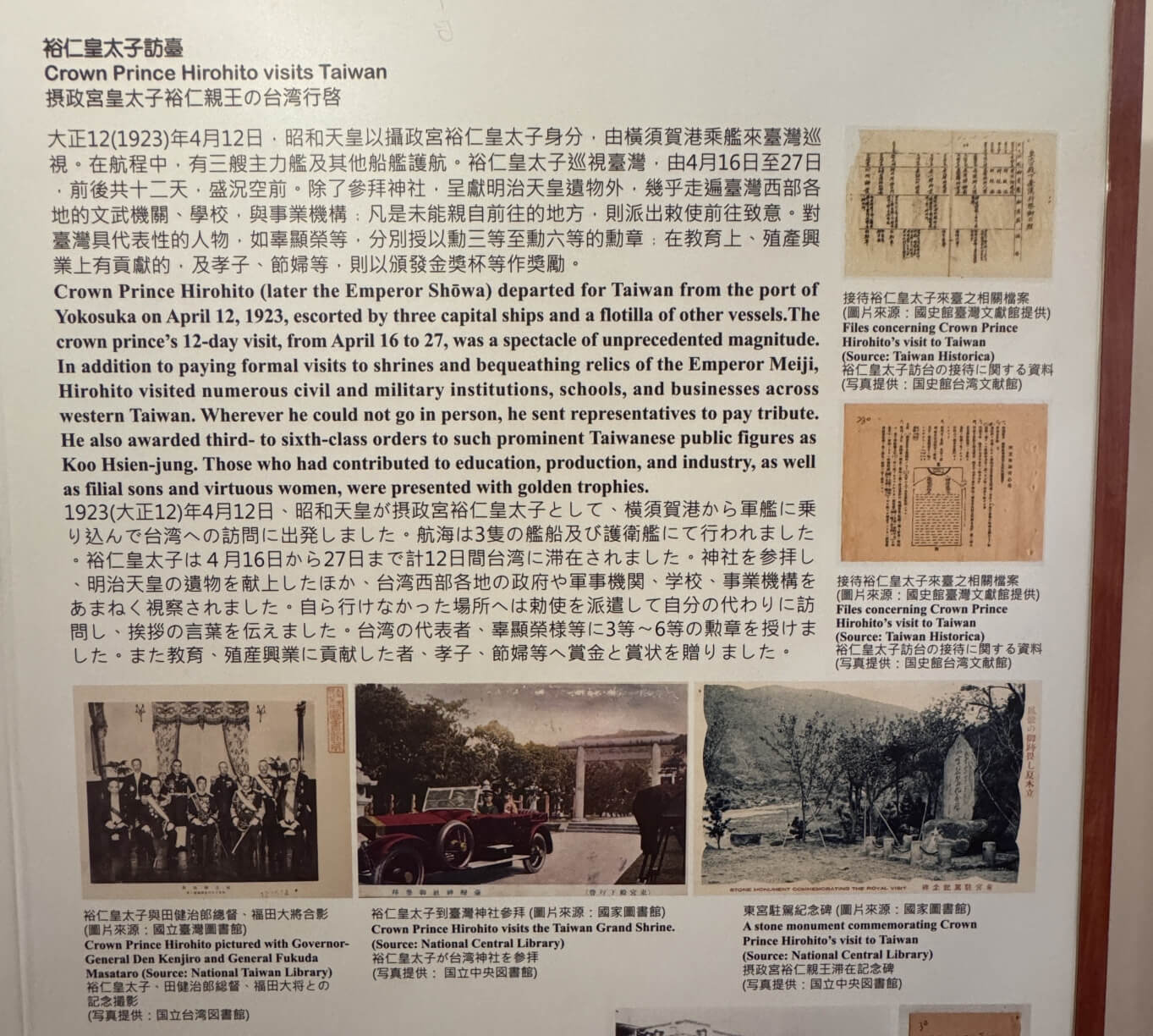↓日本皇太子裕仁視察台灣的行程及照片。