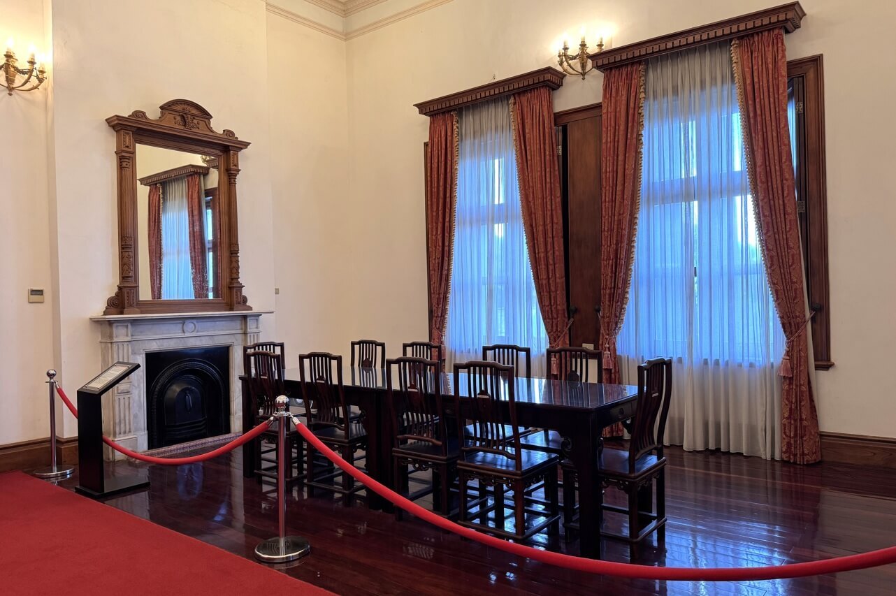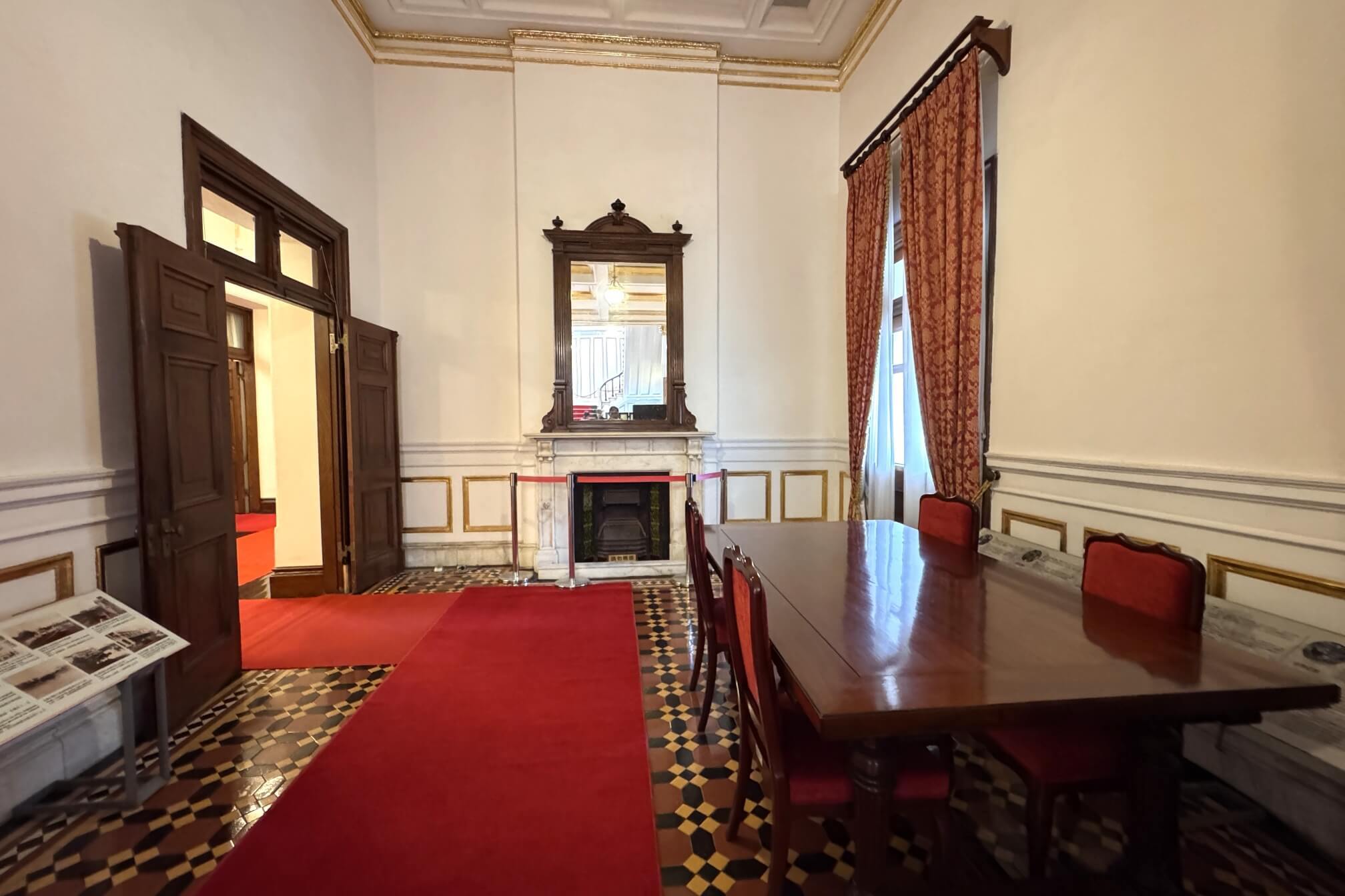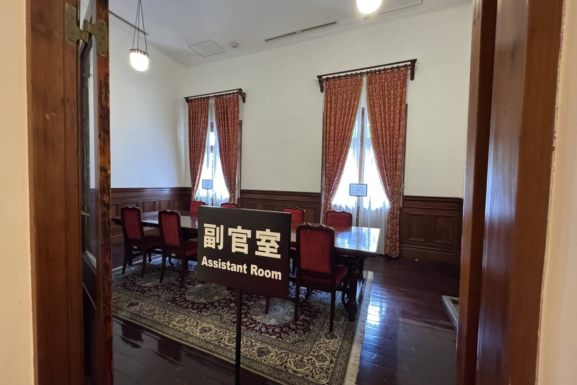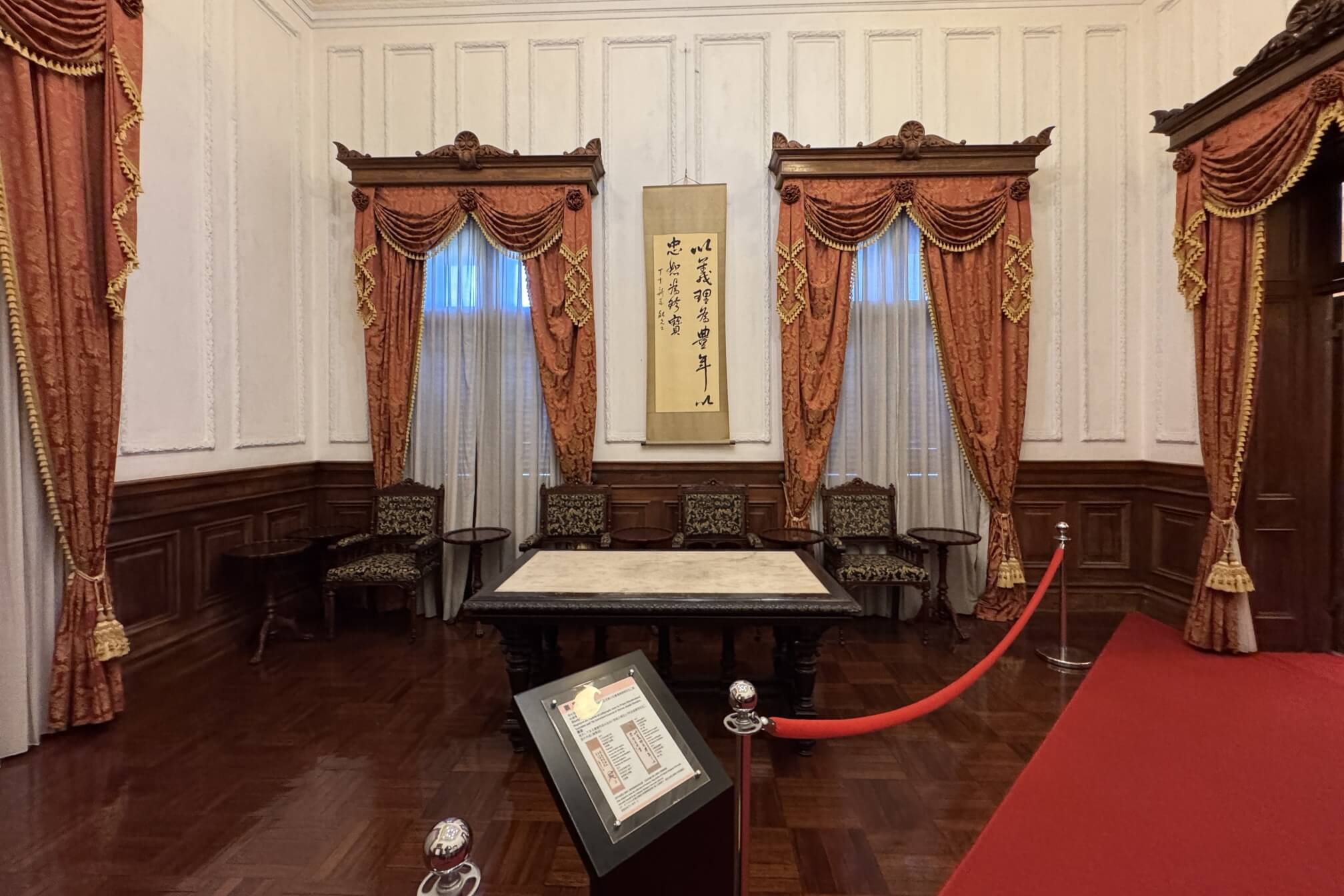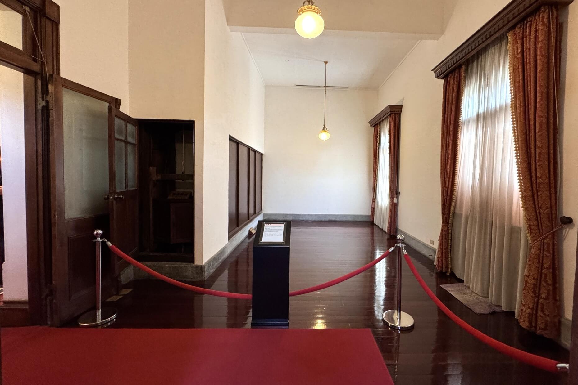↓這間看起來像是會議室。從第四任總督兒玉源太郎到末任總督安藤利吉為止,共有16位總督曾居住於此(台北賓館)。1952年,重要的《中日和約》,便是在此簽署。