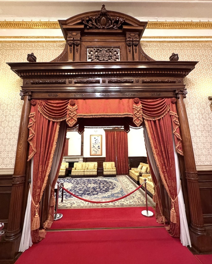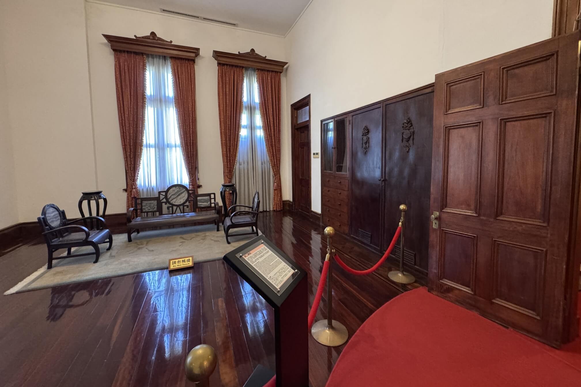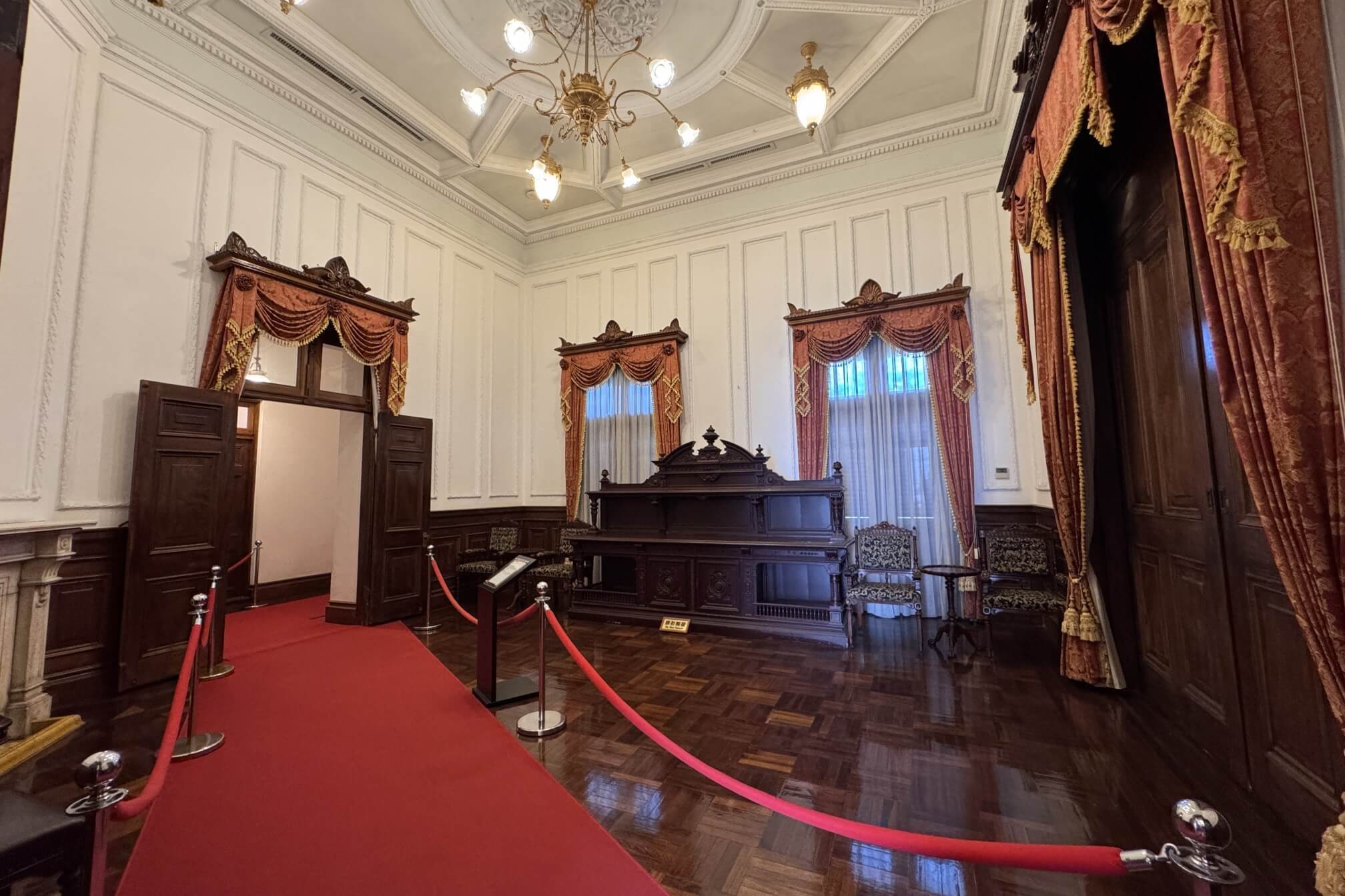 ↓這間是「第二起居室(第二居間)」,當年曾是總督的臥房,有三個側門都可以直通陽台。每當有日本皇室貴族來台,這間就成為他們的起居室。