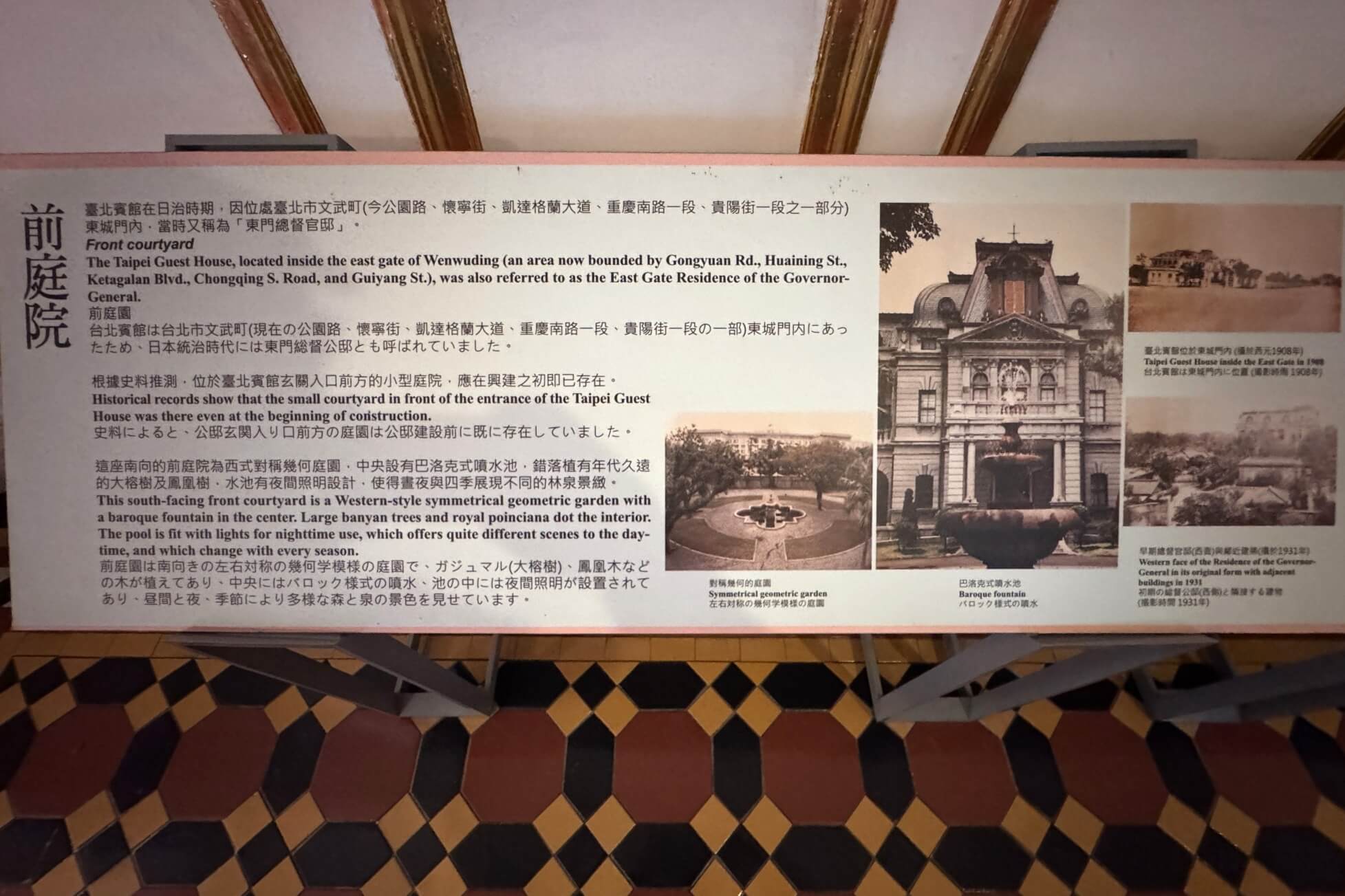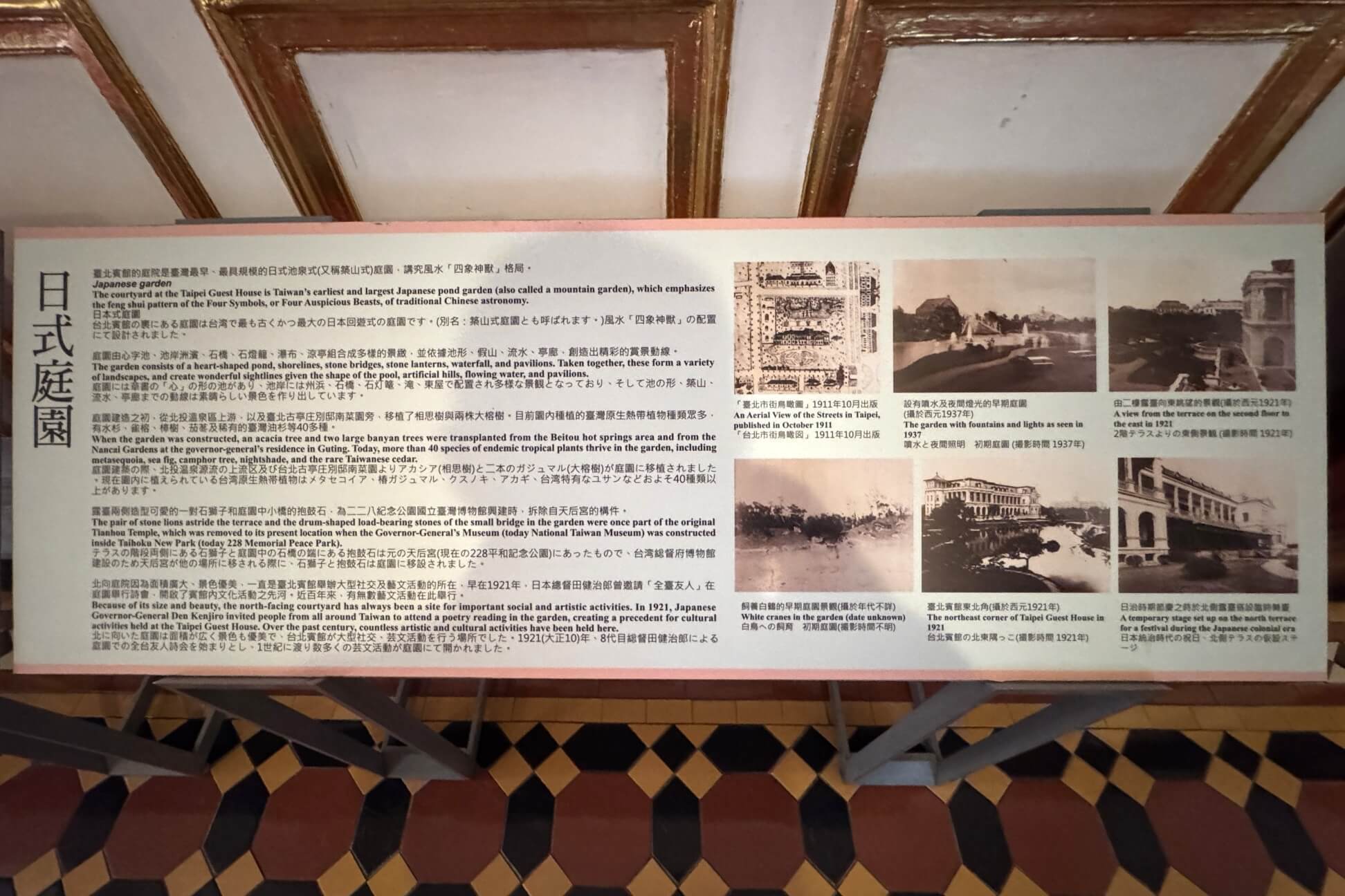 ↓目前這間會議室展出台北賓館的前庭院及日式庭園的介紹。
