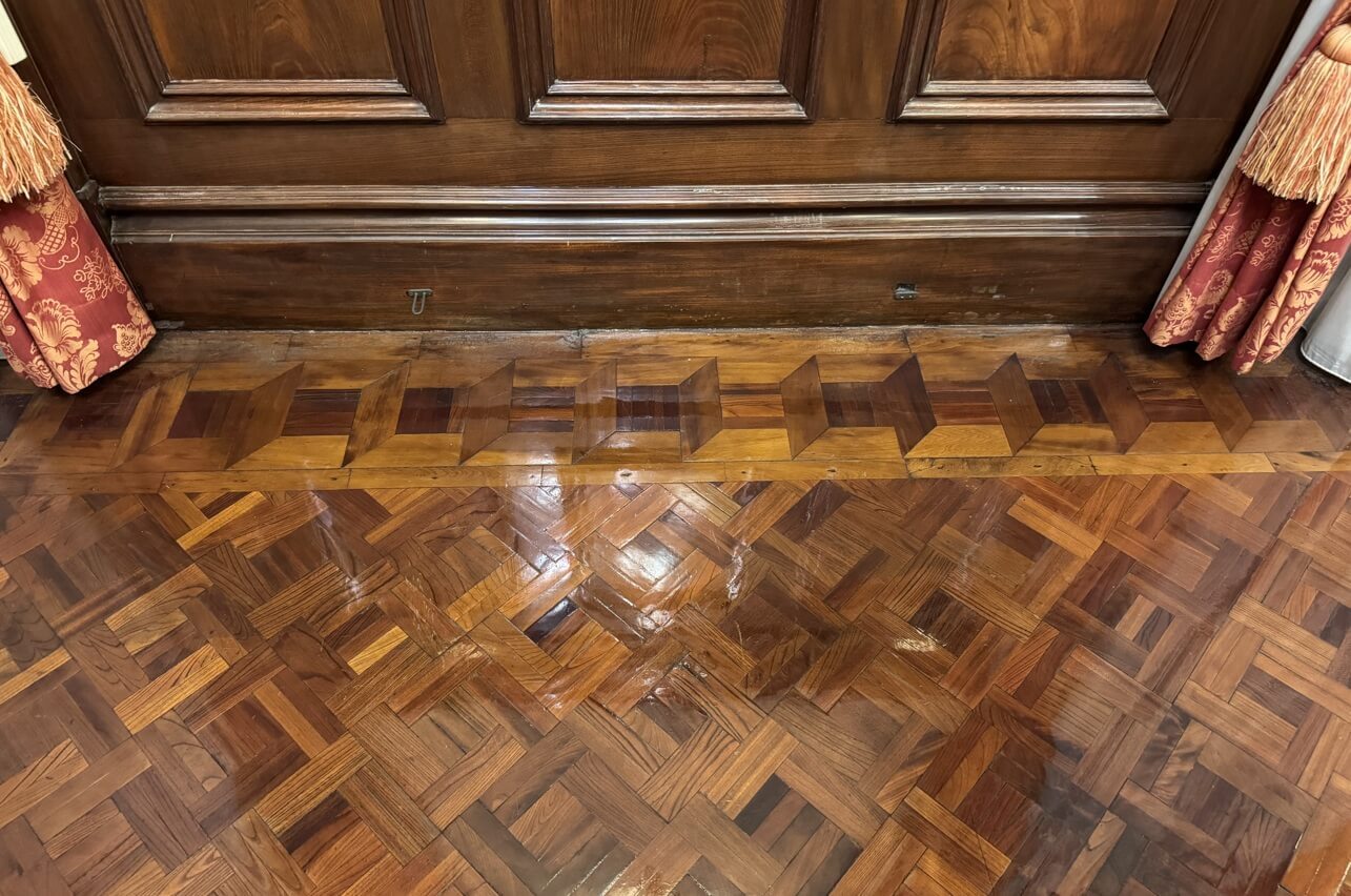 ↓地板上鋪著的是櫸木拼花地板,很有立體感。