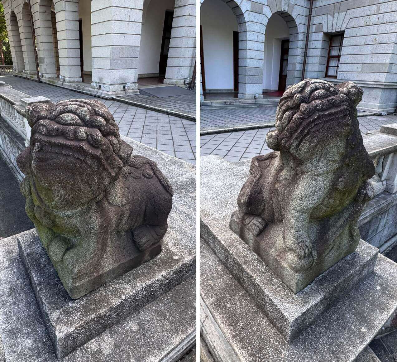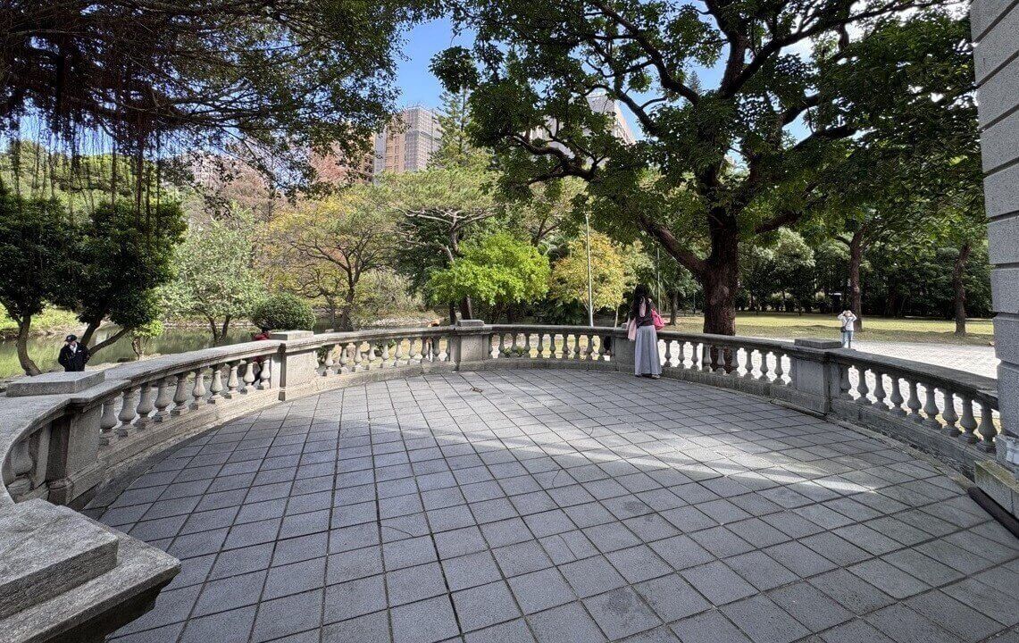 ↓主建築後側觀景平台上,還有左右一對石獅子,也是來自被日本總督府拆除的台北大天后宮。
