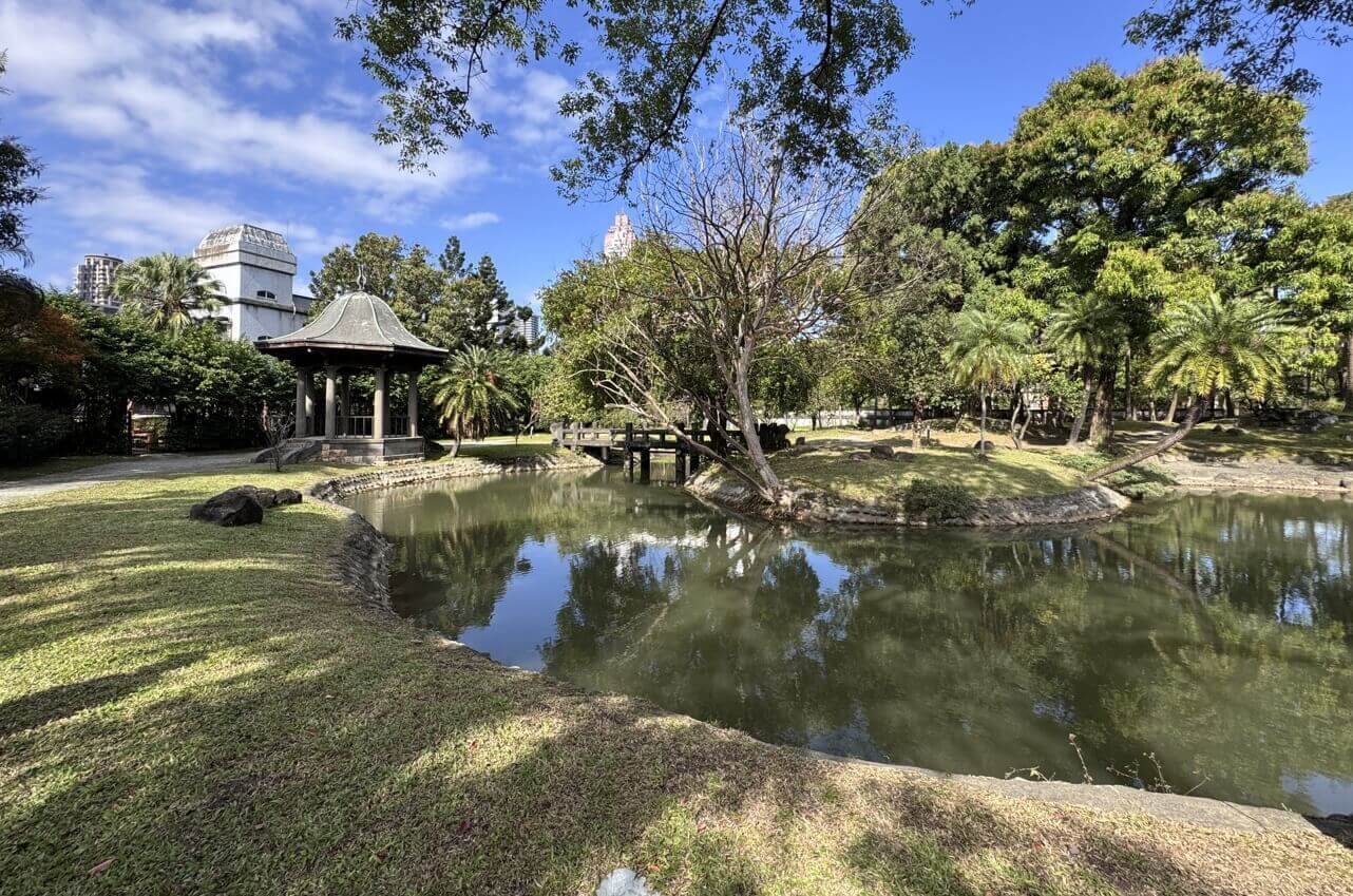 ↓有『心』字形池塘橫貫庭園之中,也有涼亭、石橋,可惜這些都未開放進入參觀。