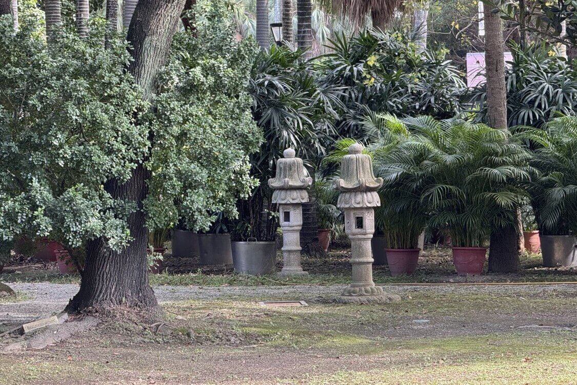 ↓後院庭園為日式庭園,有幾座石燈籠點綴。