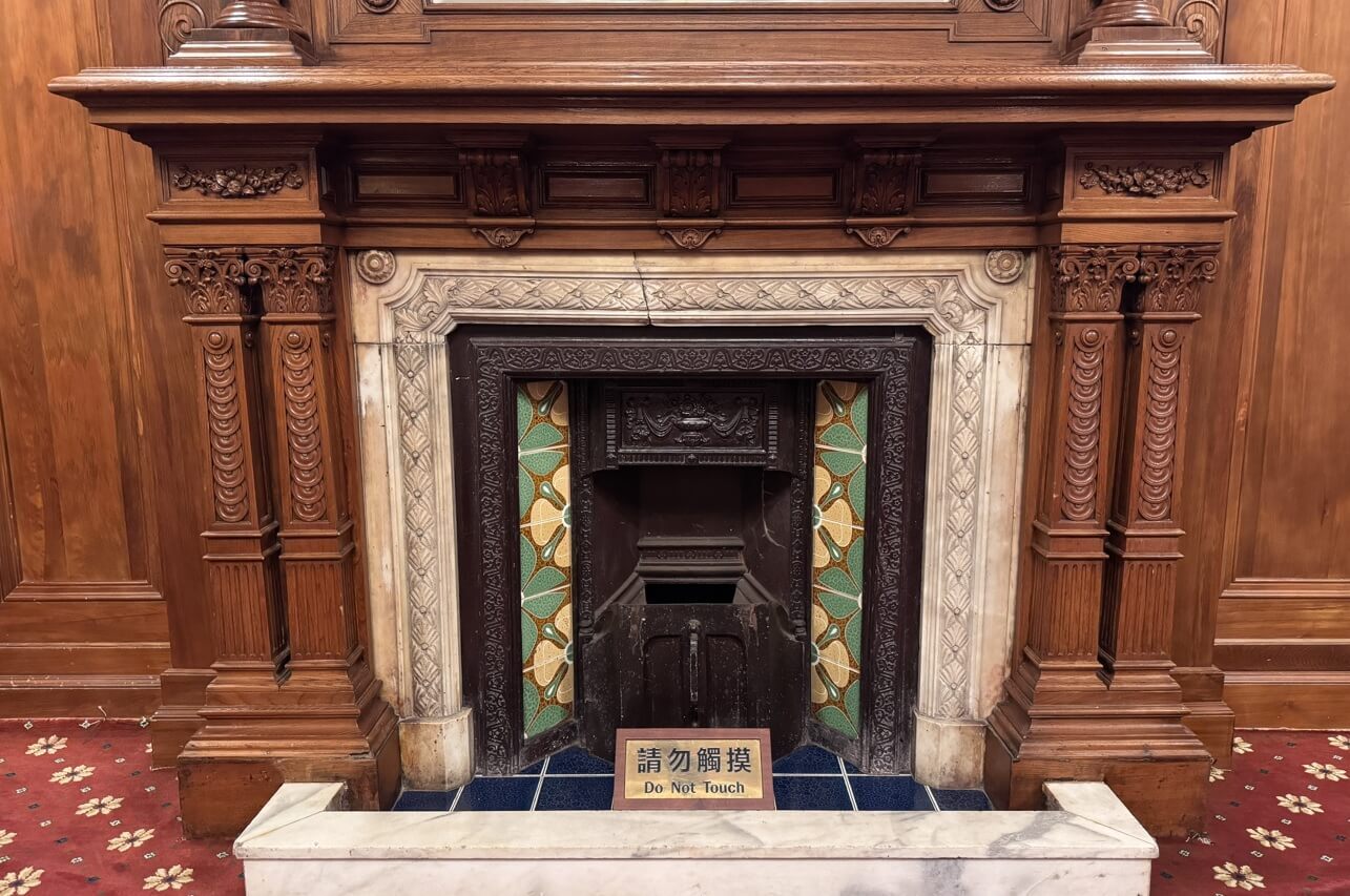 ↓這座壁爐,從上到下,有許多特別的雕飾。導覽行程在這邊告一段落,我們在台北賓館的腳步也要停歇了。