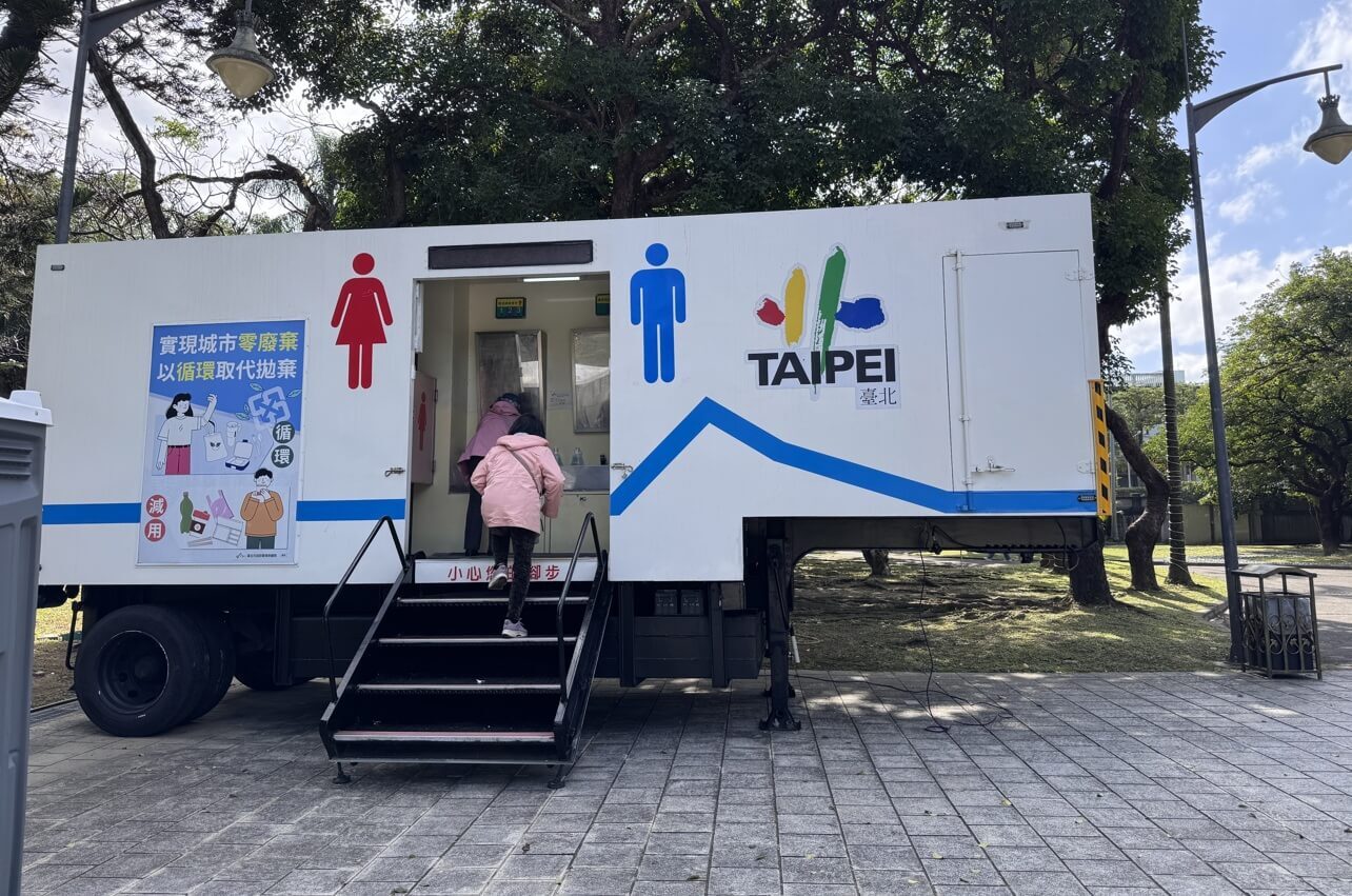 ↓為維護古蹟,主建築的浴廁並未開放,而提供行動廁所。