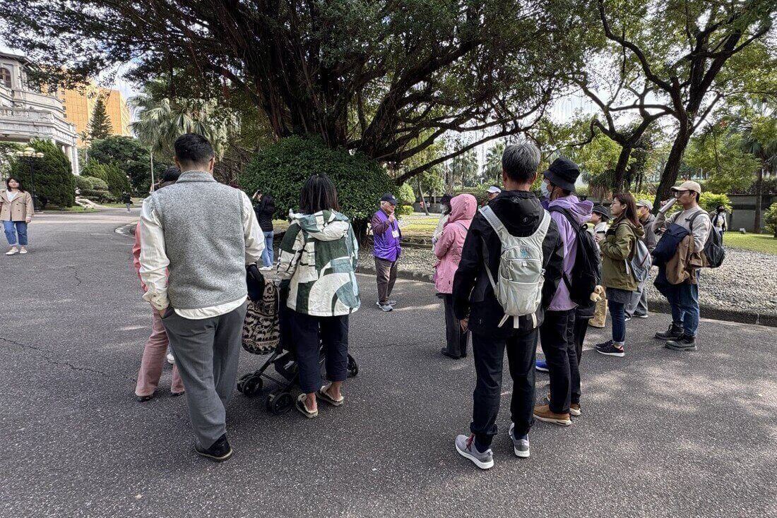 ↓法式庭園前的榕樹下,是導覽解說的集合點,每半個小時有一次免費的導覽。