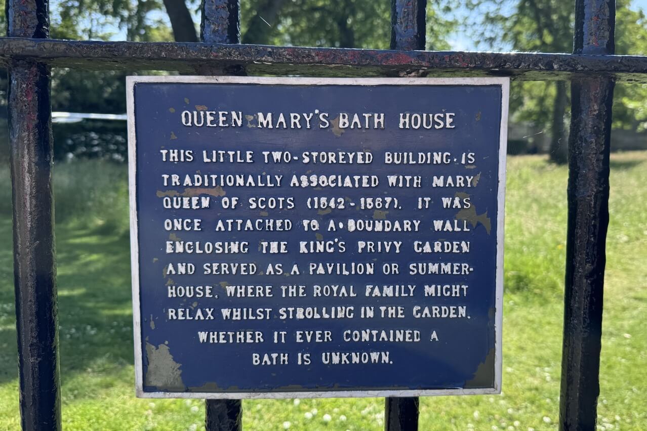 ↓瑪麗女王年幼便繼任女王,因此初期其國政皆由攝政王協助,而這間女王浴室,過去曾附著於樞密院的圍牆上,至於當時至否真的有浴室,仍是存疑的。