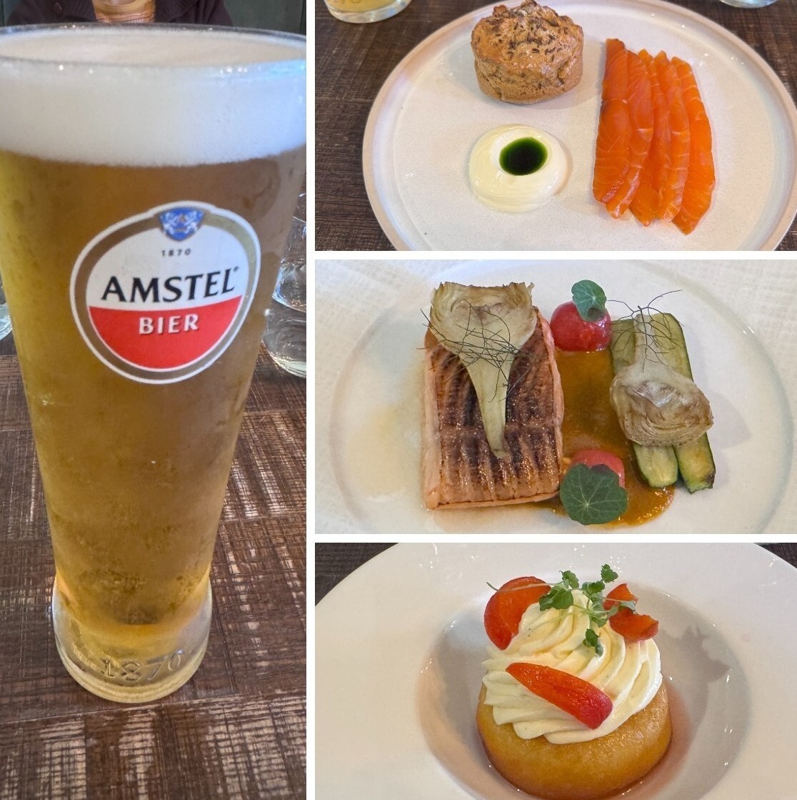 ↓果然不負『米其林』的美名,餐點擺盤講究、精緻可口。因早餐事件,領隊特別請大家點酒或果汁喝,希望大家息怒。
