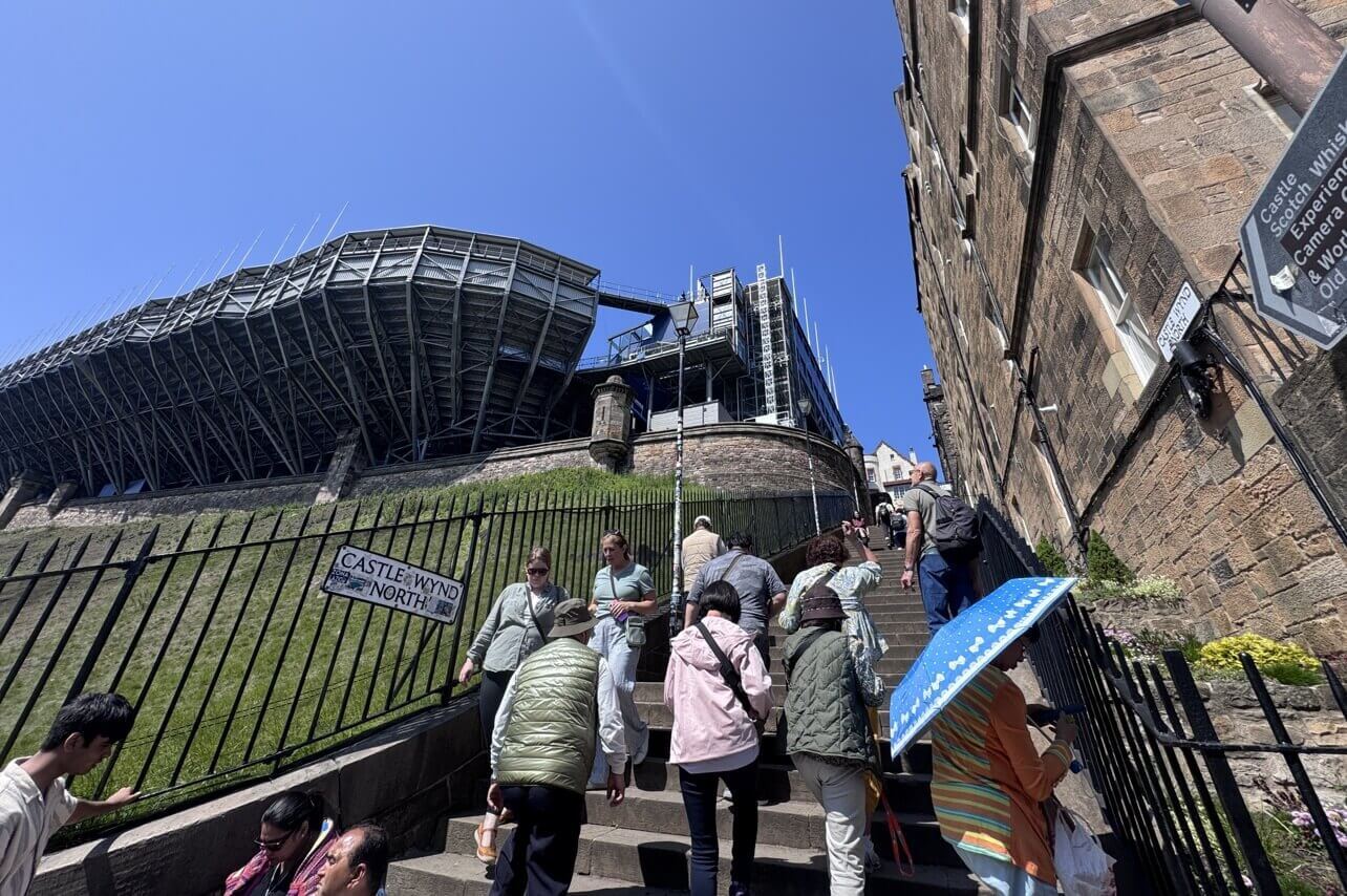 ↓餐後,沿著「皇家大道The Royal Mile」,來到「愛丁堡城堡Edinburgh Castle」。城堡位於高處,要先爬一段階梯。