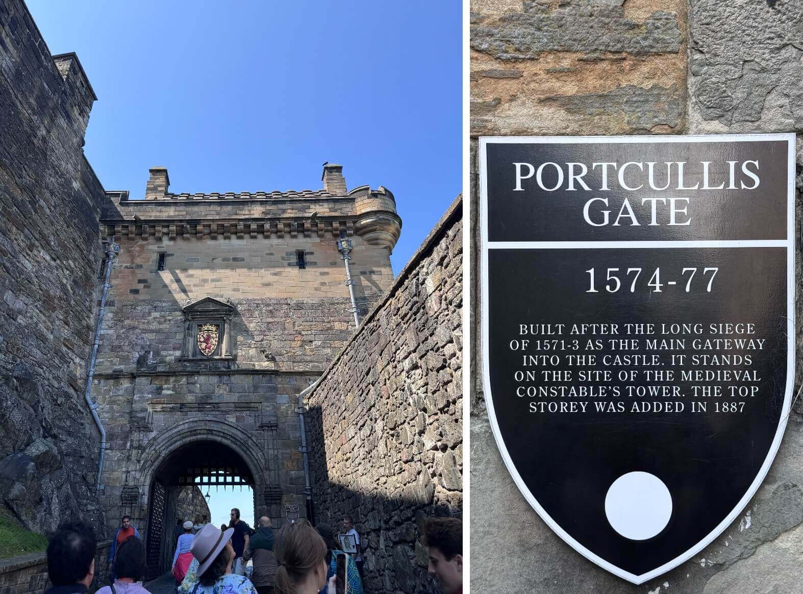 ↓經過這座「門廊門/吊閘門Portcullis」,是一座可以升降的閘門,建於1571~1573年,頂層則是1887年增建的,是愛丁堡城堡的重要入口。
