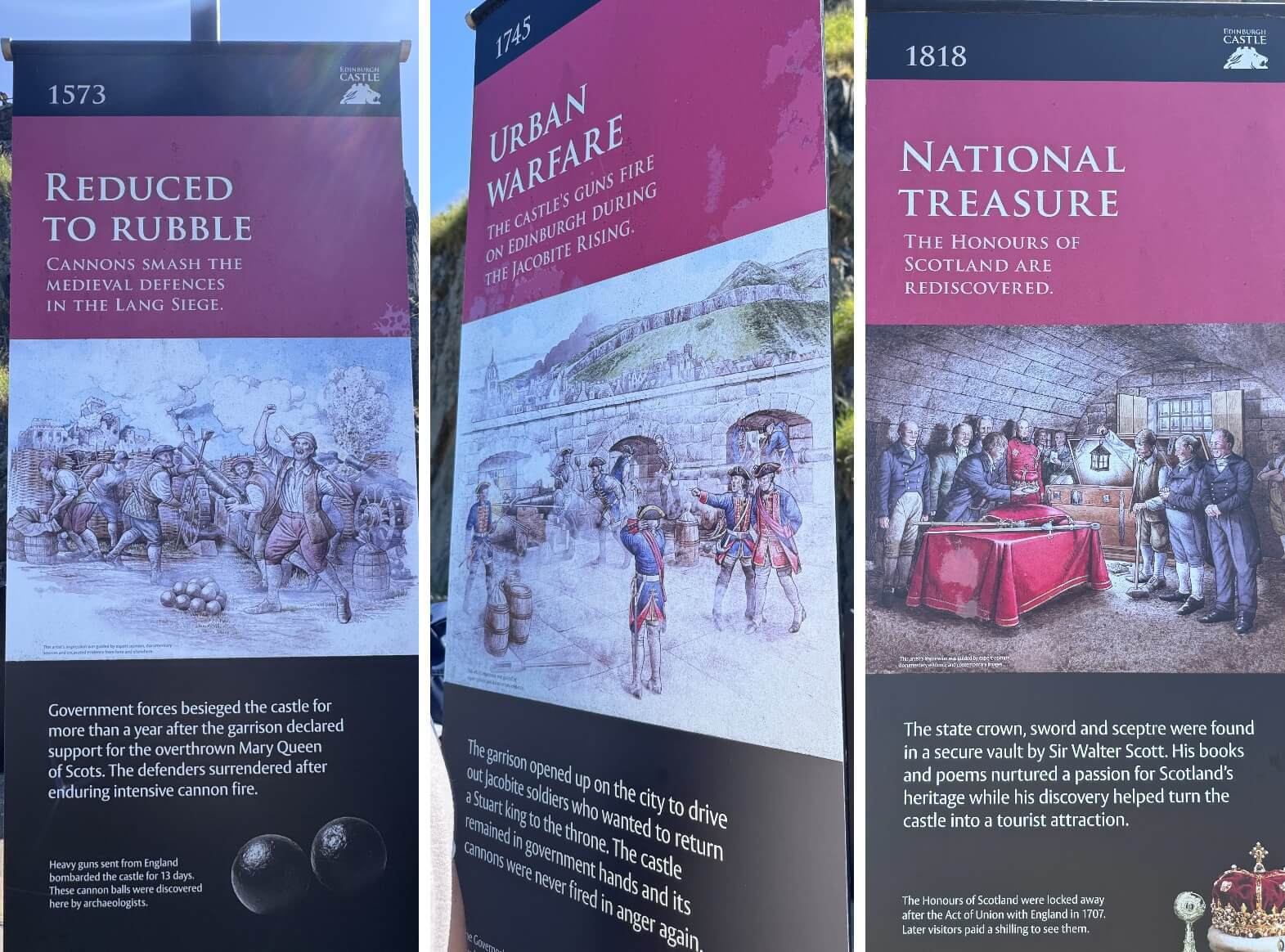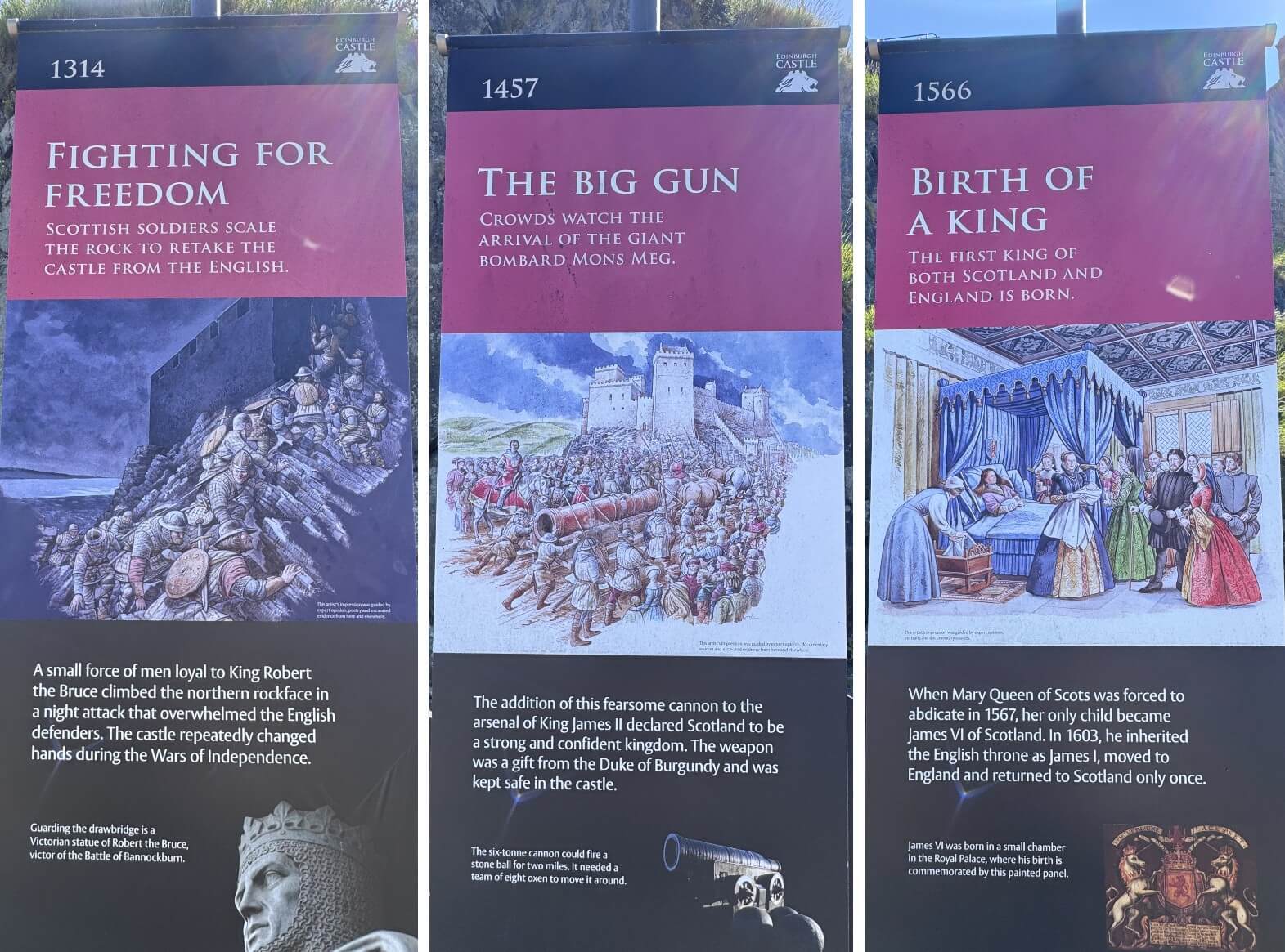 ↓皇宮內無法拍照,裡面有國王室、出生室/瑪麗室(瑪麗女王出生的房間);王冠室收藏許多蘇格蘭皇室的王冠、權杖、勳章和用品。來到大廳,大廳原是國家議會的主要場所,曾陸續作為軍隊的營房、軍醫院,目前收藏了許多的兵器。