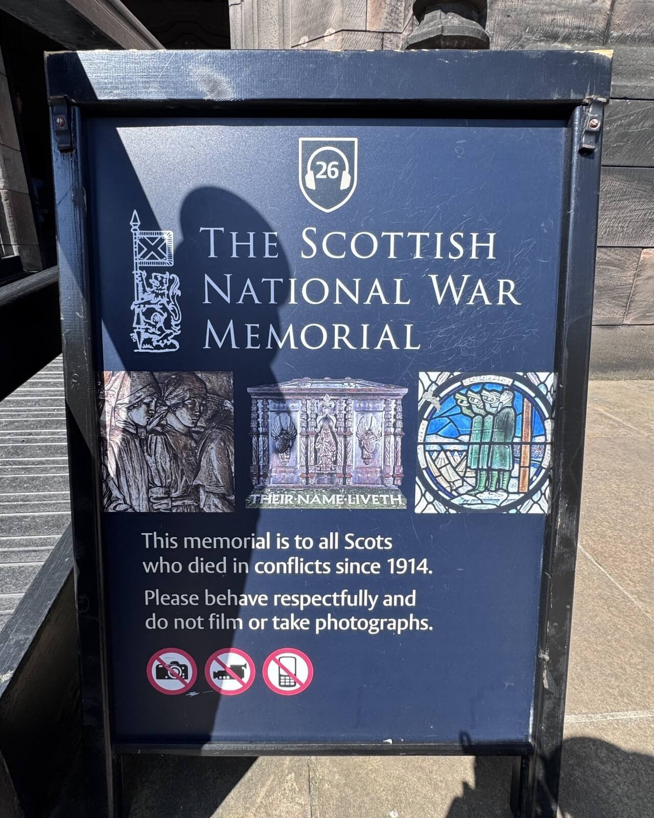 ↓國家戰爭紀念館是為了紀念從1914年起,於戰爭衝突(尤其是第一次世界大戰)中犧牲的蘇格蘭人。館內禁止拍照或攝影。